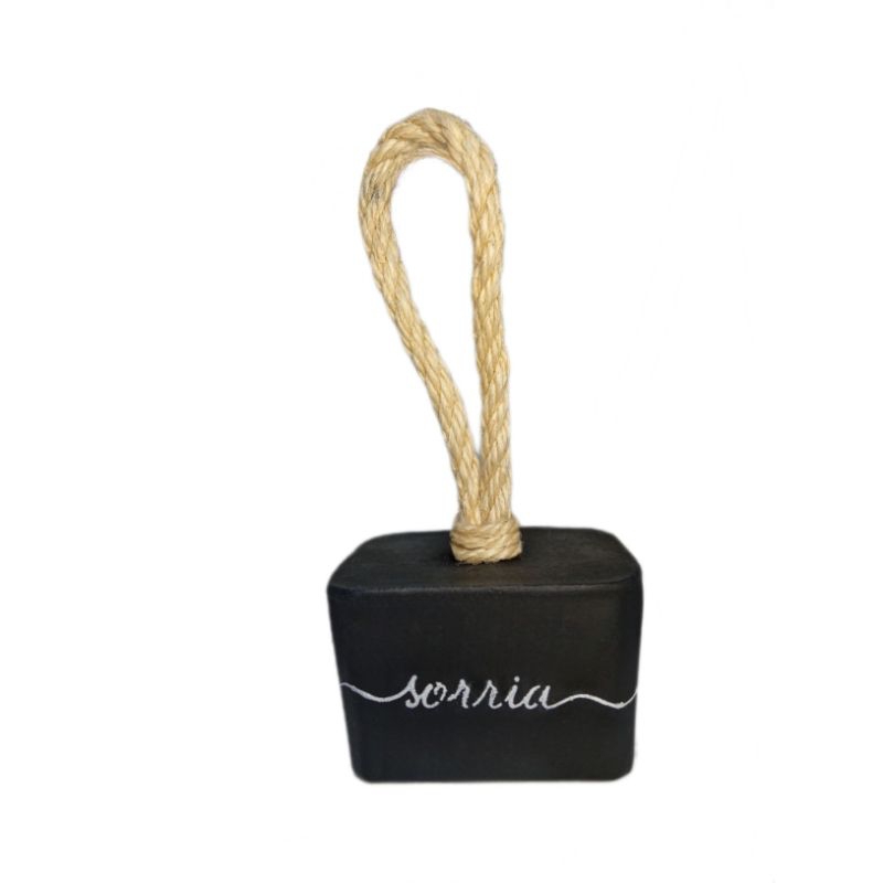 Peso de Porta Decorativo Pequeno Concreto 1,3Kg Palavras Positivas Motivacionais Letra cursiva - Base Carpete Anti-Risco