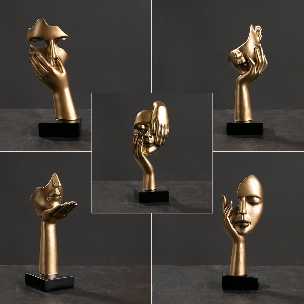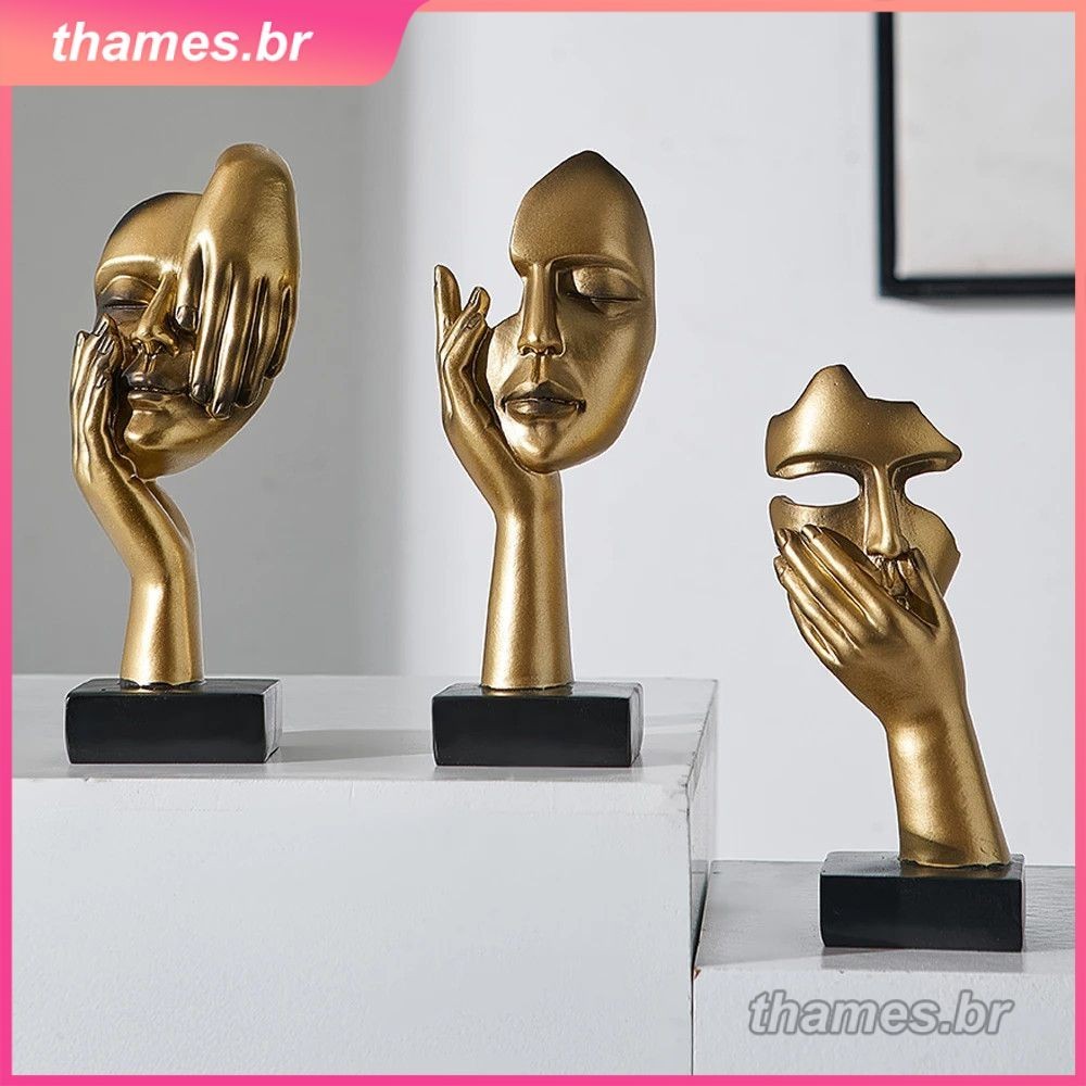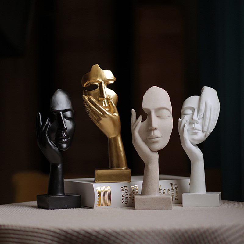 Decoração para casa estátua abstrata de resina luz nórdica luxo rosto expressão escultura artesanato ornamentos de mesa