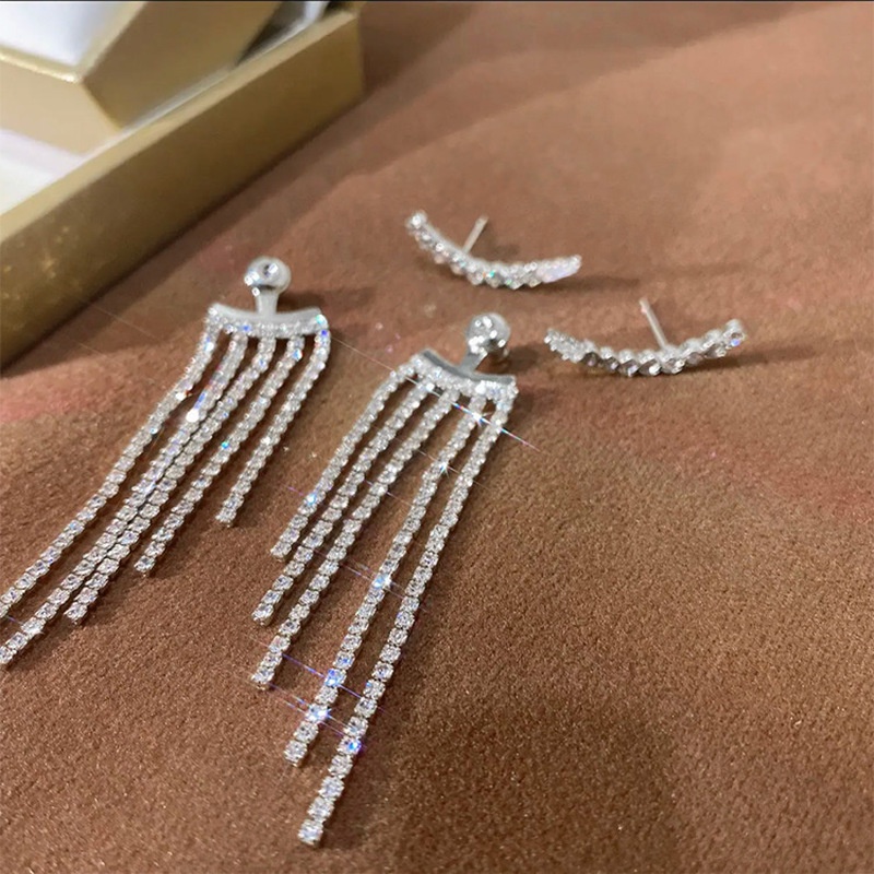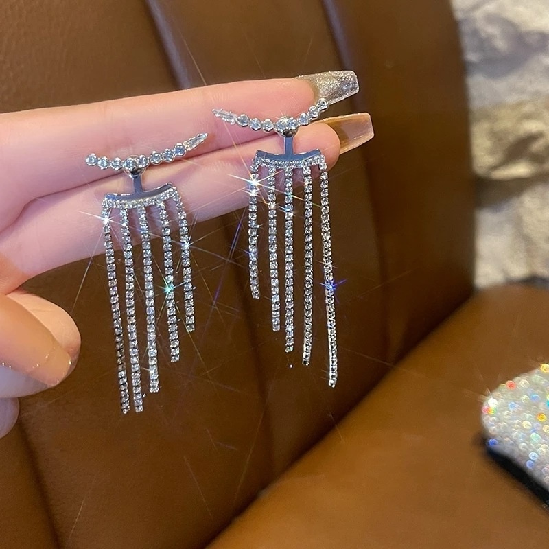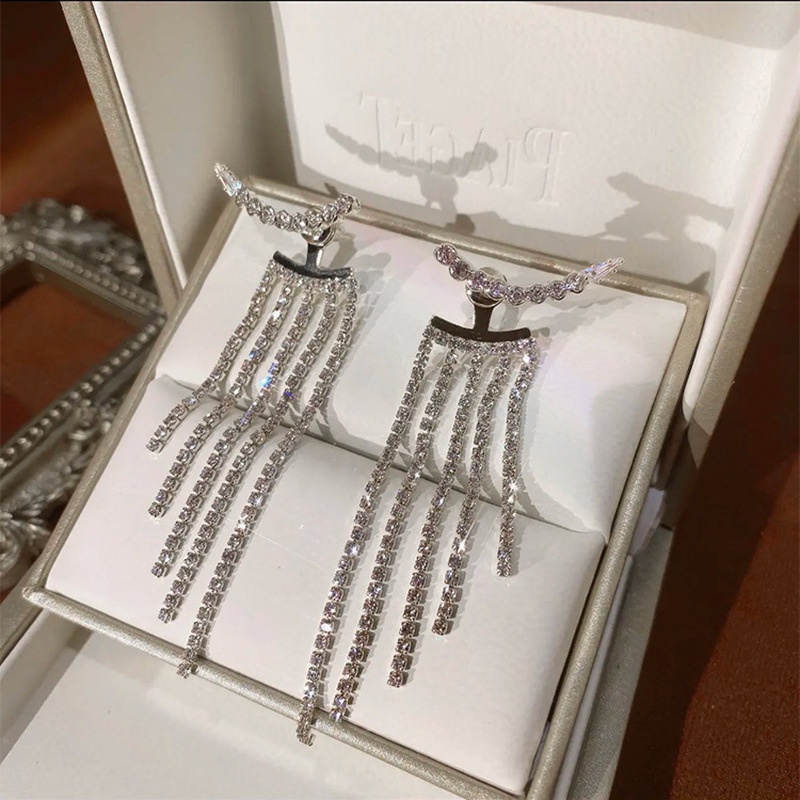 Mulheres De Luxo Coreano Brilhante Cristal Longa Borla Brincos Do Parafuso Prisioneiro/Senhoras Temperamento Elegante Rhinestone Dangle/Festa De Casamento Nupcial Minimalista Jóias Ouvido Acessórios