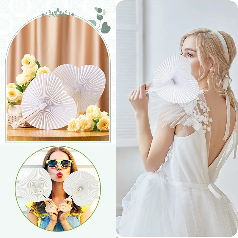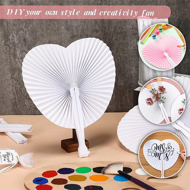 [Ventilador Dobrável À Mão-De Papel Branco Em Forma De Amor Portátil De Viagem Ao Ar Livre-Para Aniversário