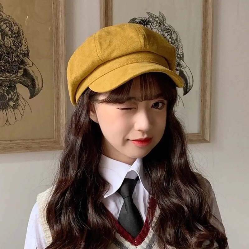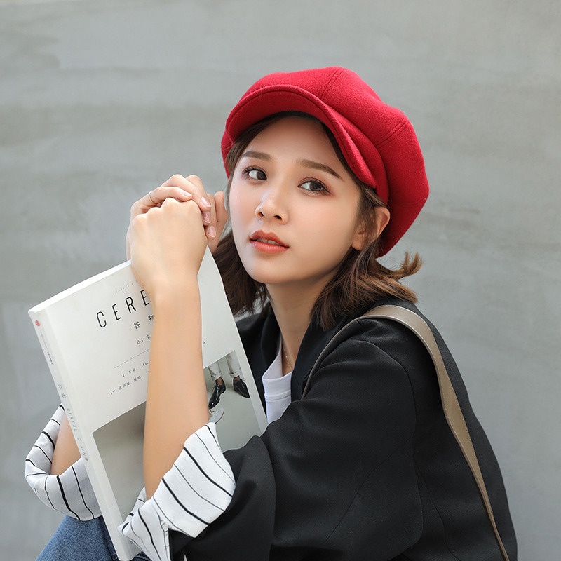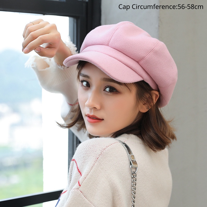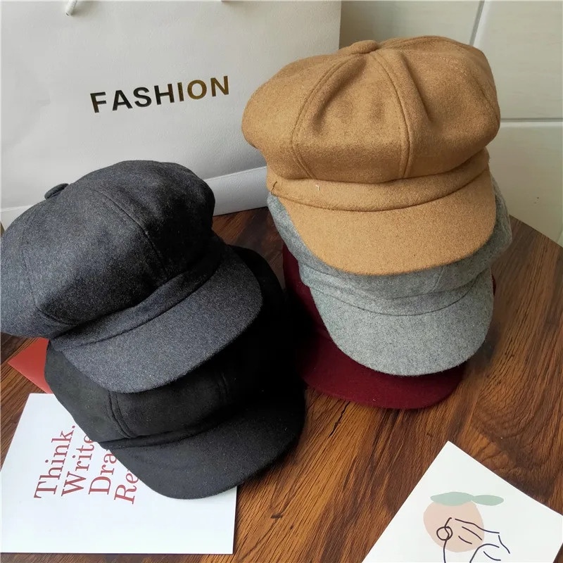 Boina De Anis De Lã De Outono E Inverno Feminino/British Vintage Style Solid Color Thickened Warm Hat/Tendência Estilo Literário Duck Tongue Cap Show Face Small/Fashion Accessories