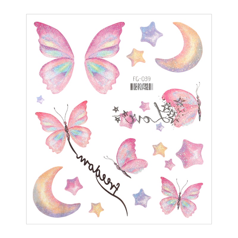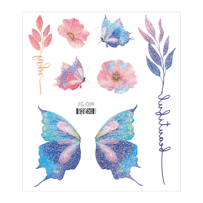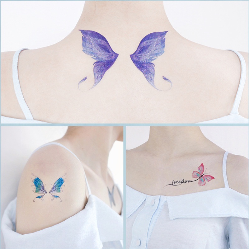 Autocolante De Tatuagem 3D Borboleta Brilhante/Arte Corporal À Prova D'água Falsa/Pintura Facial DIY/Temporária Para Impressão Em Transferência De Água