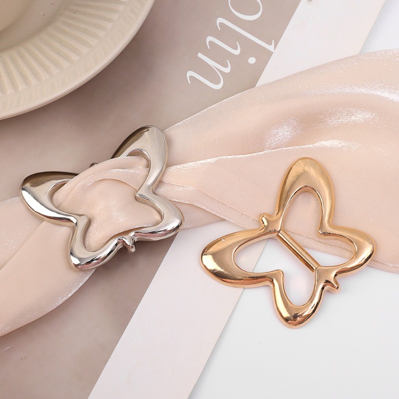 Lenço De Seda Simples Botão De Camisa Canto Fivela/Elegante Broches Com Nó De Cintura/Metal Hijab Anel/Vestuário Botões Fixos Decoração