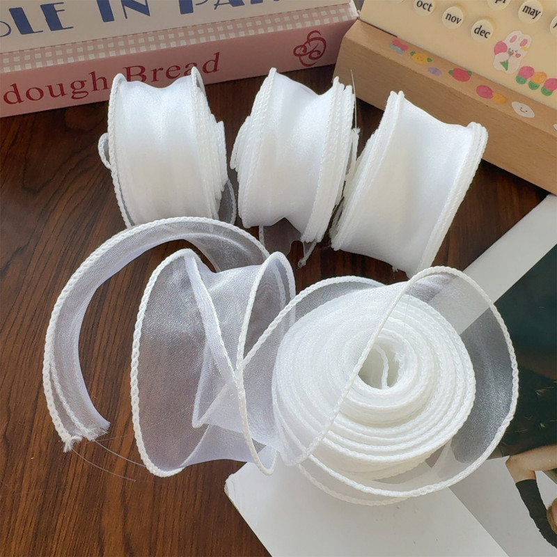 Fita De Cetim De Fio Transparente De 9 M/Rolo-Rabo De Peixe De Fada Organza Com Borda Ondulada-Buquês De Flores Decoraçã