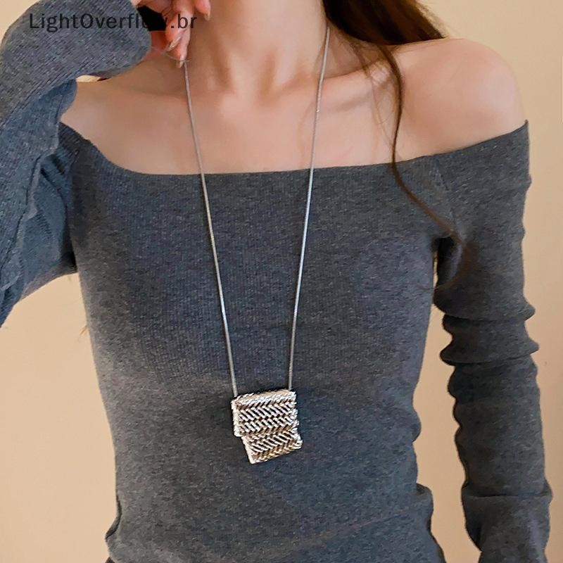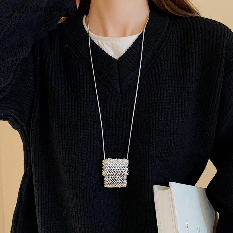 [LightOverflow] Colar Longo Com Pingente De Bolsa De Tecido Para Mulheres , Meninas , Nicho , Personalidade , Moda Única
