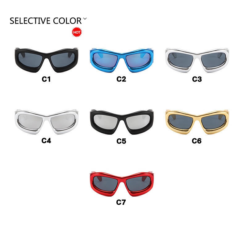 (YUZHU) Y2K Óculos De Sol De Tamanho Superior À Bolha Hip Hop Western Fashion Dazzling Sunshade