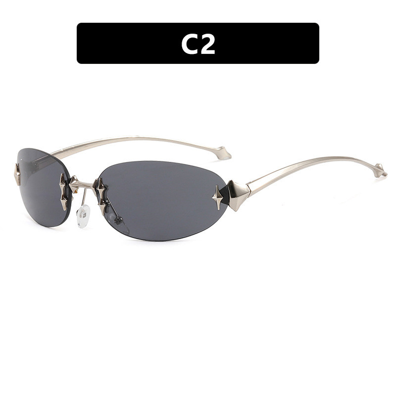 (YUZHU) Óculos De Sol Estrela Sem Aro Com Armação Oval Y2K Spice Girls Para Mulheres