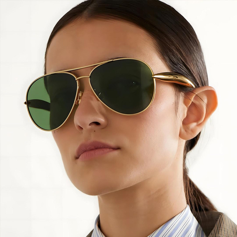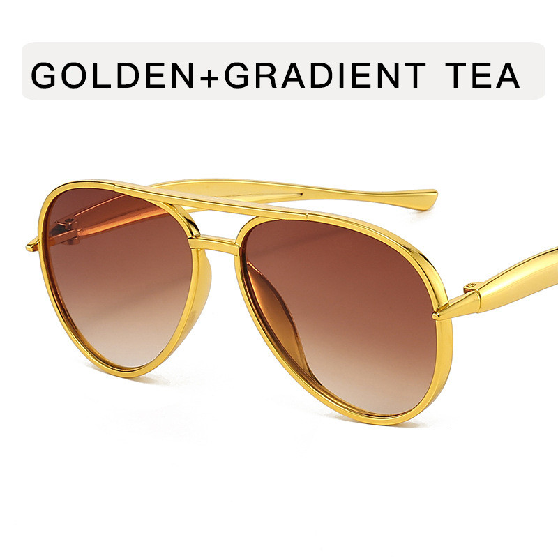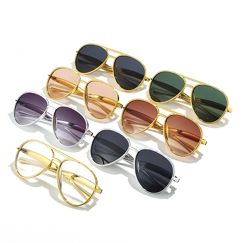 (YUZHU) Óculos De Sol Da Moda Piloto Banhados A Feixe Duplo Retrô Europeus E Americanos