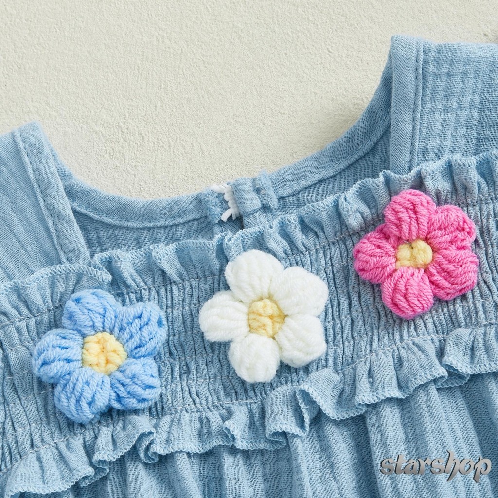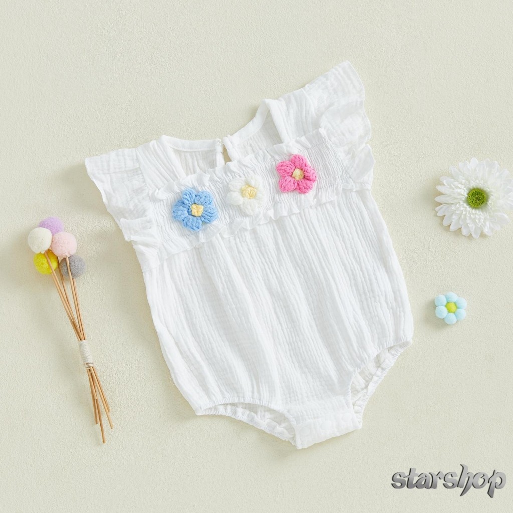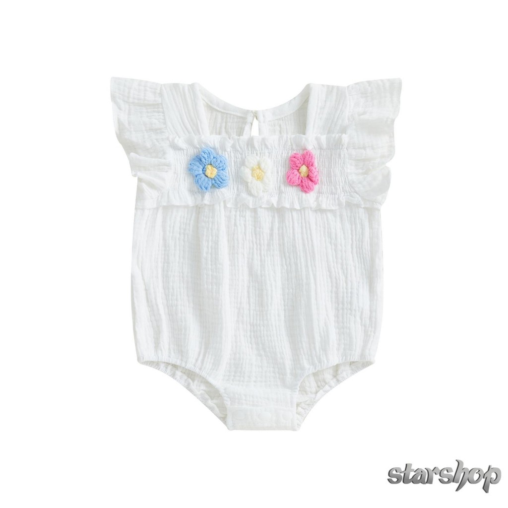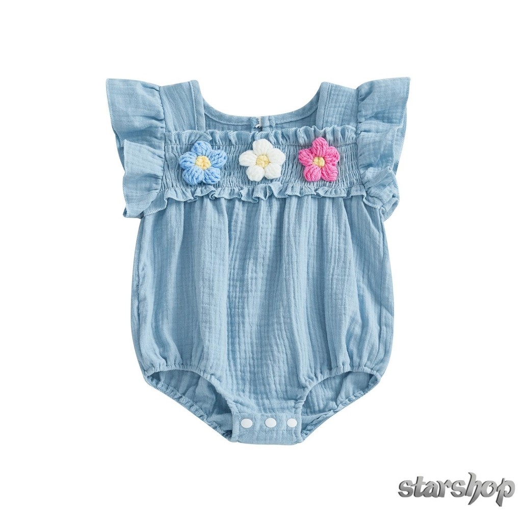 Starshop-Macacão Para Bebês Meninas Com Bordado De Flores E Manga Voadora Recém-Nascidos Perfeito O Verão