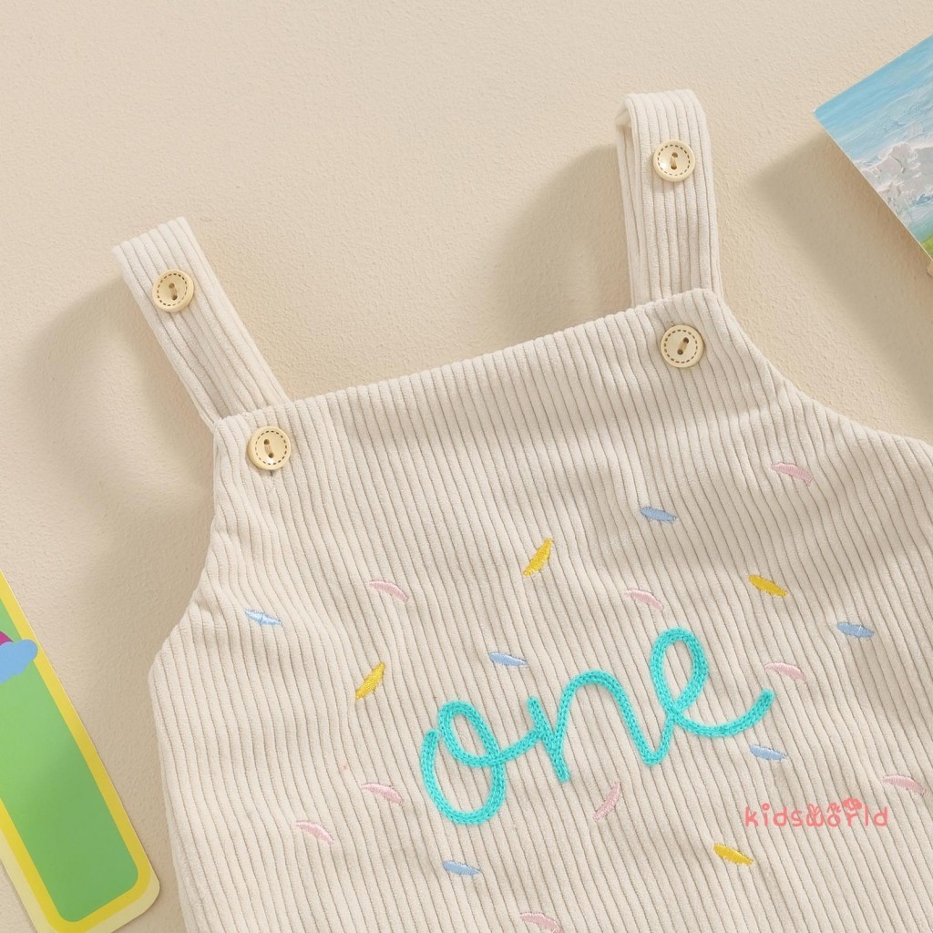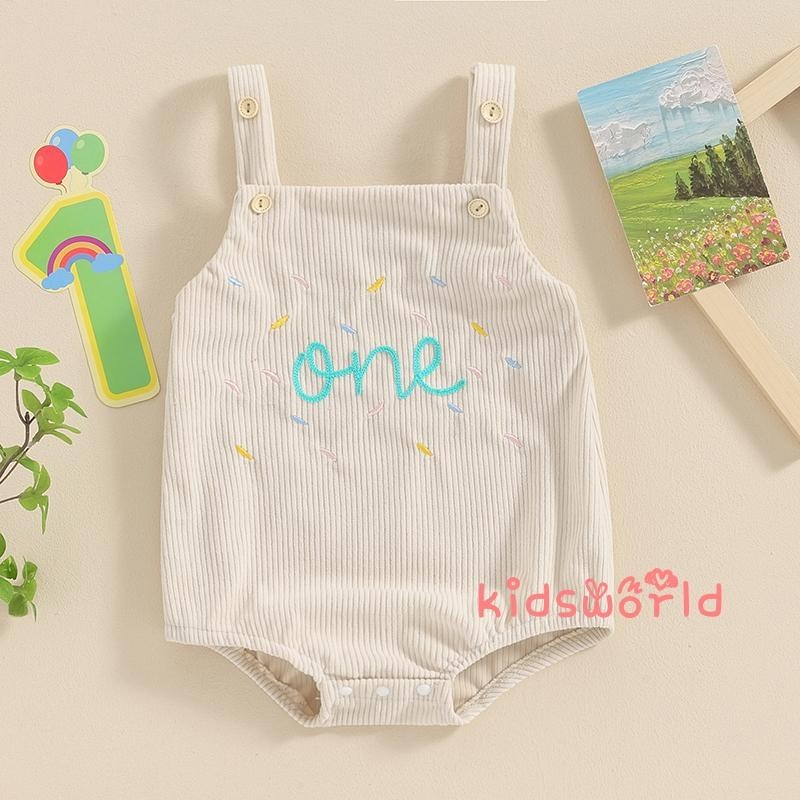 KidsW-Baby Primeiro Aniversário Romper Sem Manga Botão De Fechamento Cartas Do Fato Casual