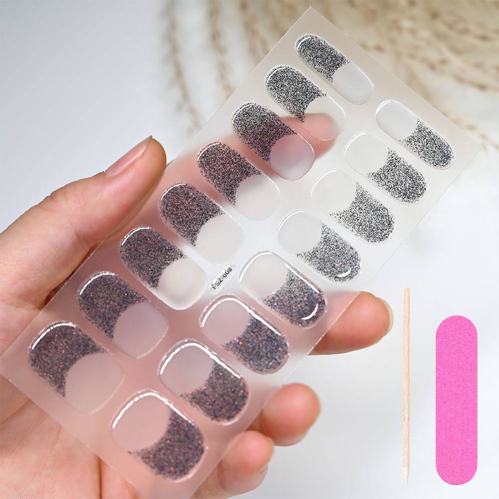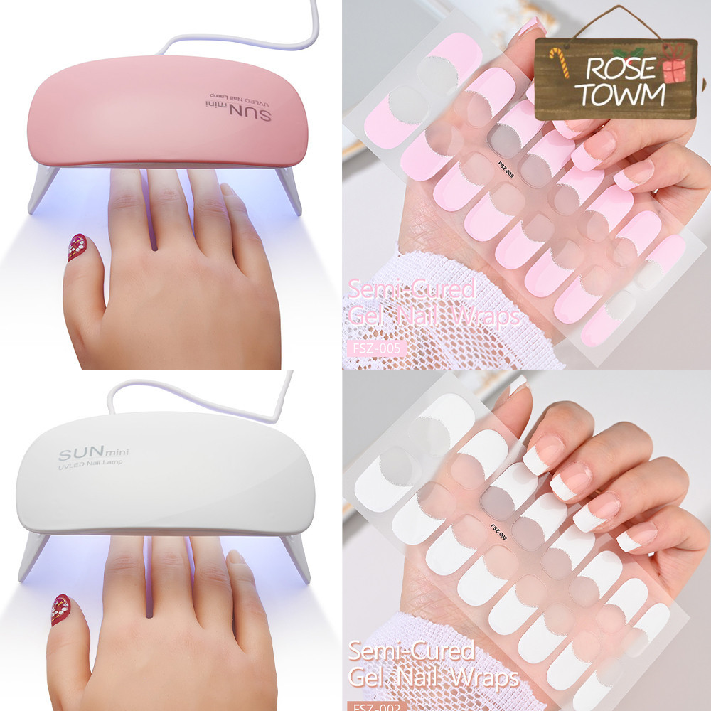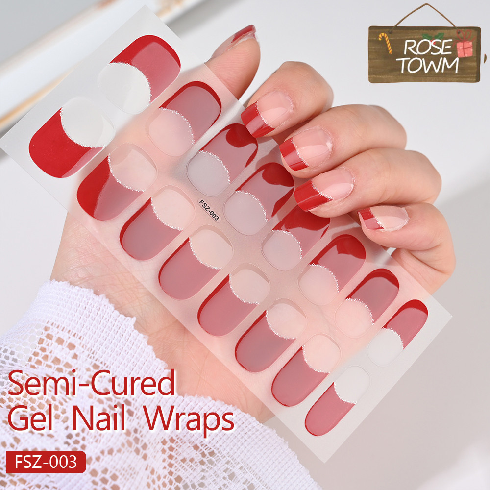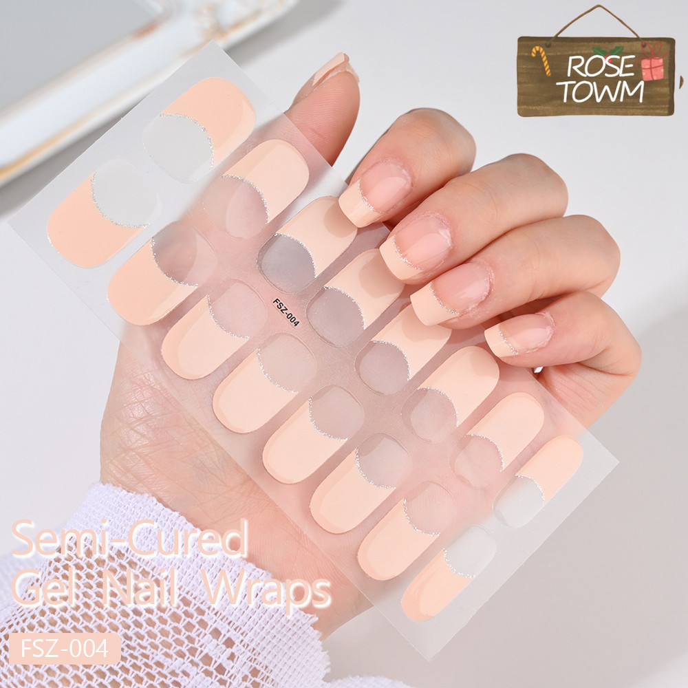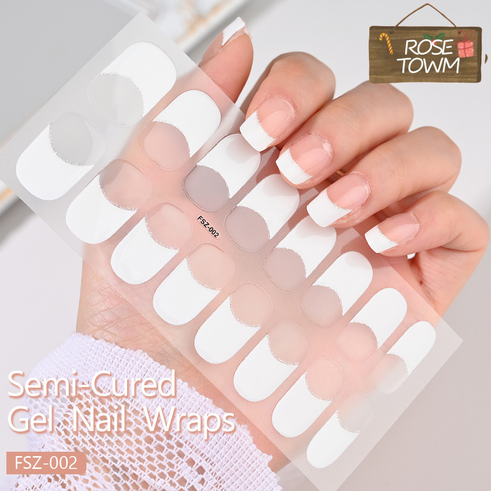 16Strips Semi-Cured UV Gel Wraps Baking Nail Sticker Cobertura Completa Lâmpada LED De Longa Duração Decalques
