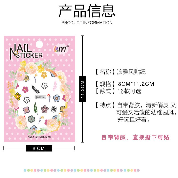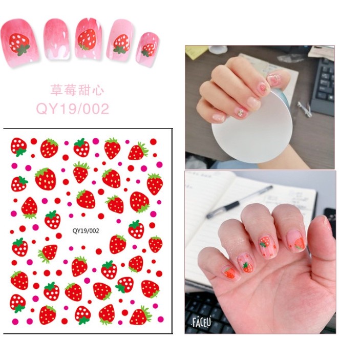 70 Adesivo de unha Flor da floresta Morango Querida Adesivo de unha 3D Acessórios para decalques de arte em unhas