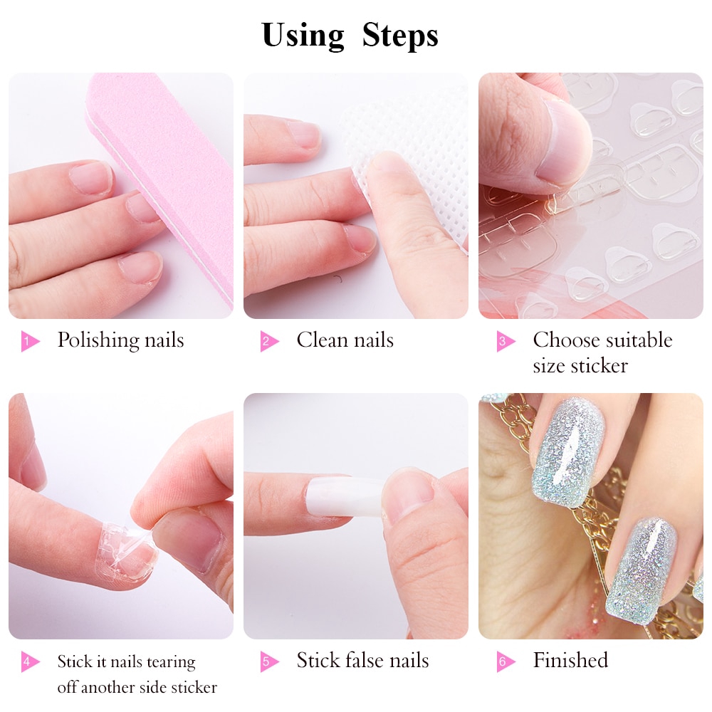 10 Folhas / 240 Pçs de Cola de Unha / Adesivo Dupla Face para Unha Postiça / Item para Manicure / Kuku Palsu