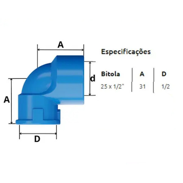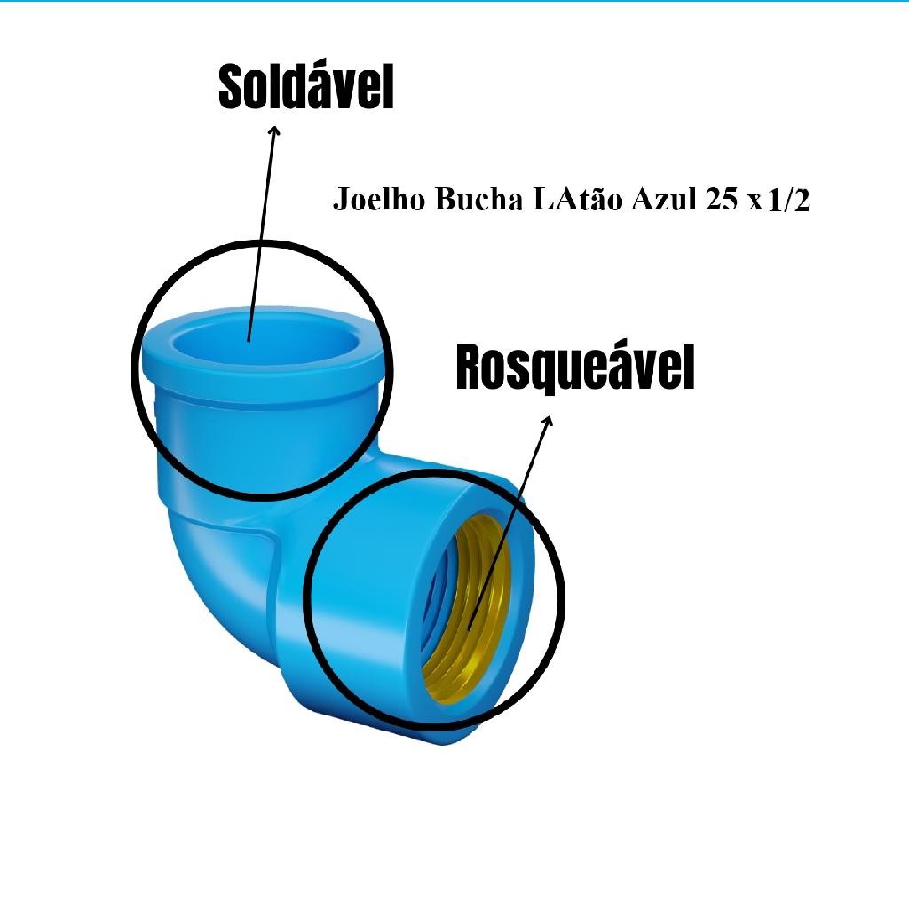 Joelho Azul Sold x Rosca Bucha Latão 90º 25 x 1/2 kit 10 pc