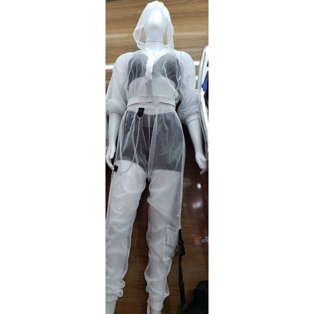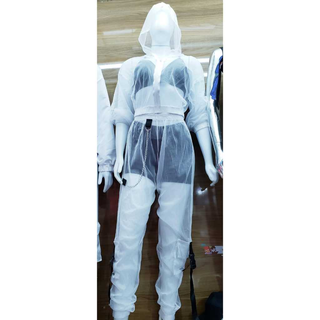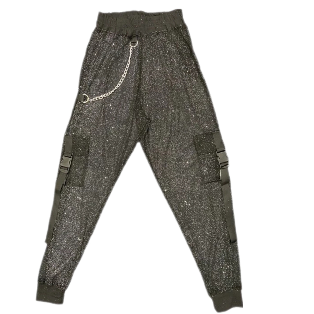 Calça Estilo Gringa Street Transparente Brilhante corrente e bolsos Cargo/Jogger/Y2Kcintura alta/hot track pants/sexy