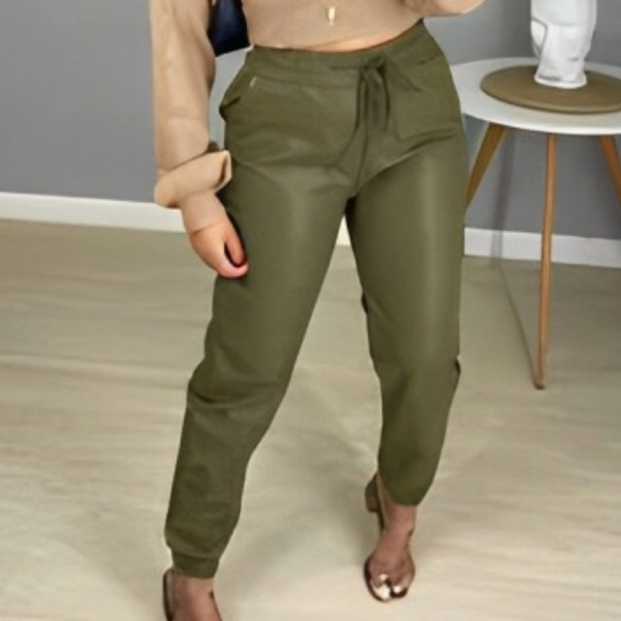 Calça Courino Premium com bolsos laterais Couro FAKE - cargo/jogger/track pants/black Friday Lojas Best Center Oficial