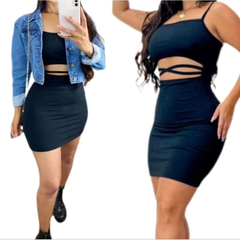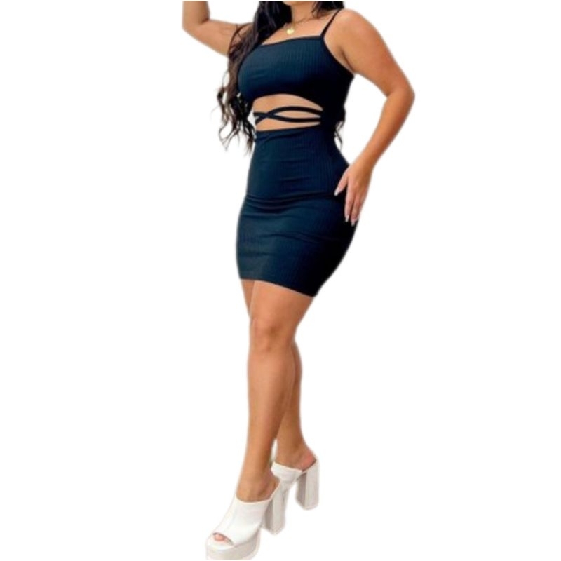 Vestido Tubinho de alça Modelo Gringa Strappy/tiras - canelado/sem bojo