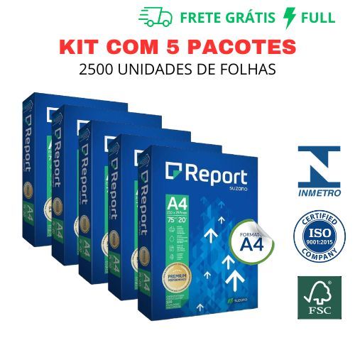PAPEL SULFITE REPORT PREMIUM A4 BRANCO 75G KIT 5 PACOTES (2500 FOLHAS)