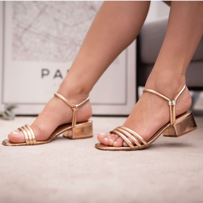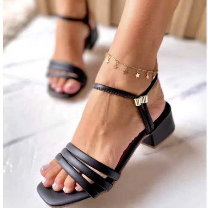 Sandália feminina salto bloco três tiras