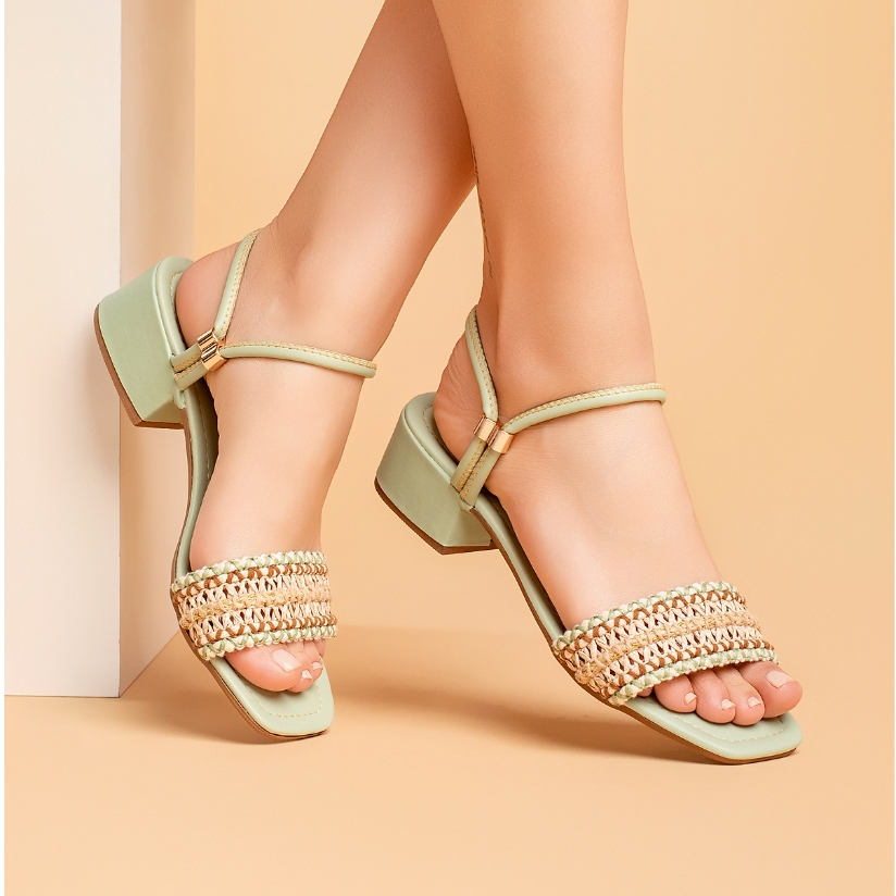 Sandália feminina salto bloco tamanco trança trêsse artesanal