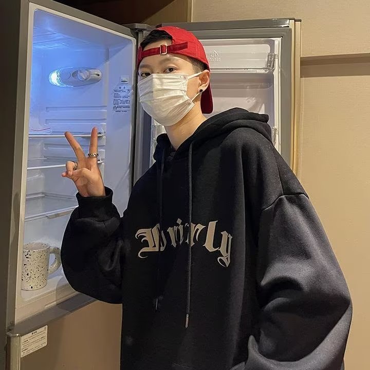 Casaco Com Capuz Coreano Masculino De Tamanho Grande Suéter Versão Coreana Do Pulôver Solto Estampa Retrô De Casal