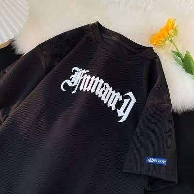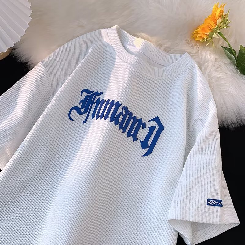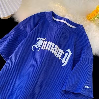Da Prateleira De Verão Masculino Camiseta De waffle Com Desenho De Letra vintage Manga Curta Gráfica Masculina