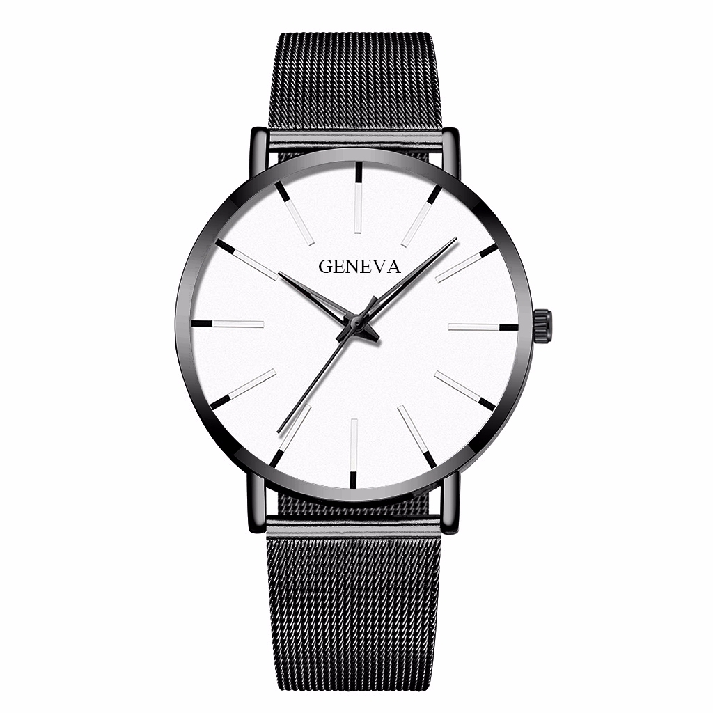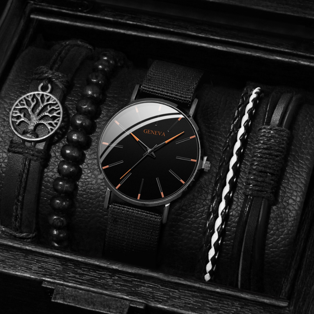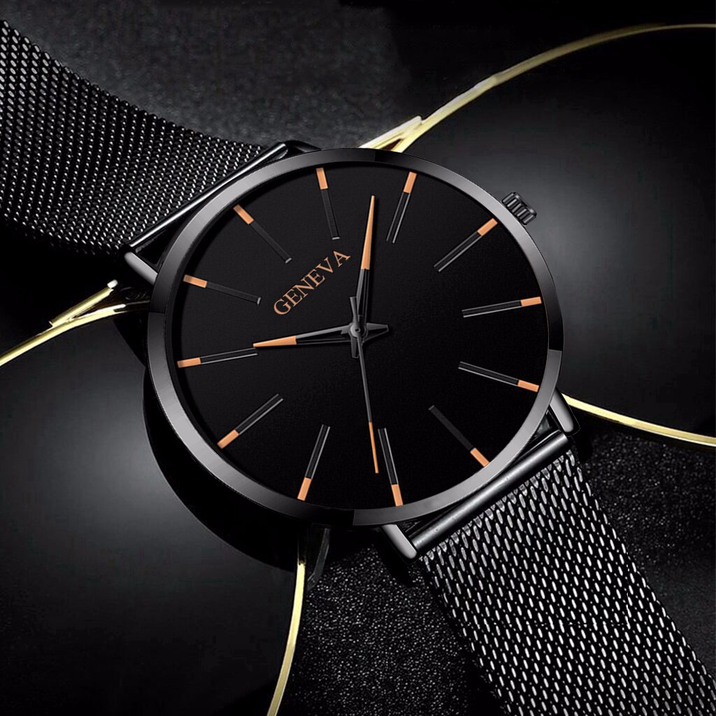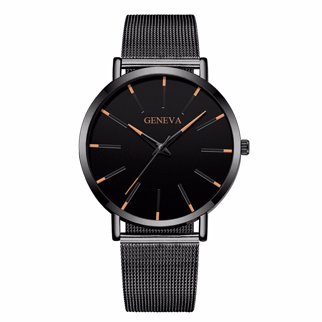Relógio Homem Aço Inoxidável Preto & Couro Banda De Nylon Quartzo