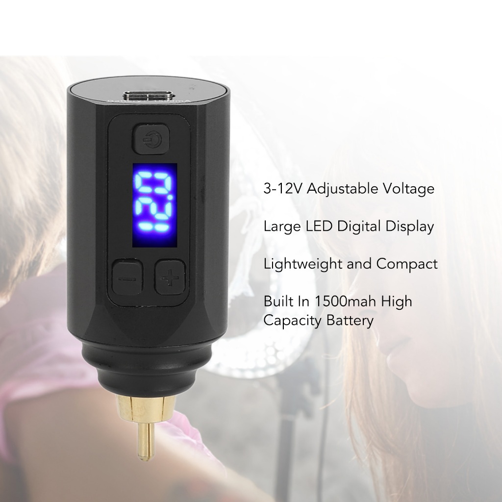 Fonte De Alimentação Sem Fio Tattoo , 3-12V RCA 1500mAh Tensão Ajustável Peso Leve Para Shop
