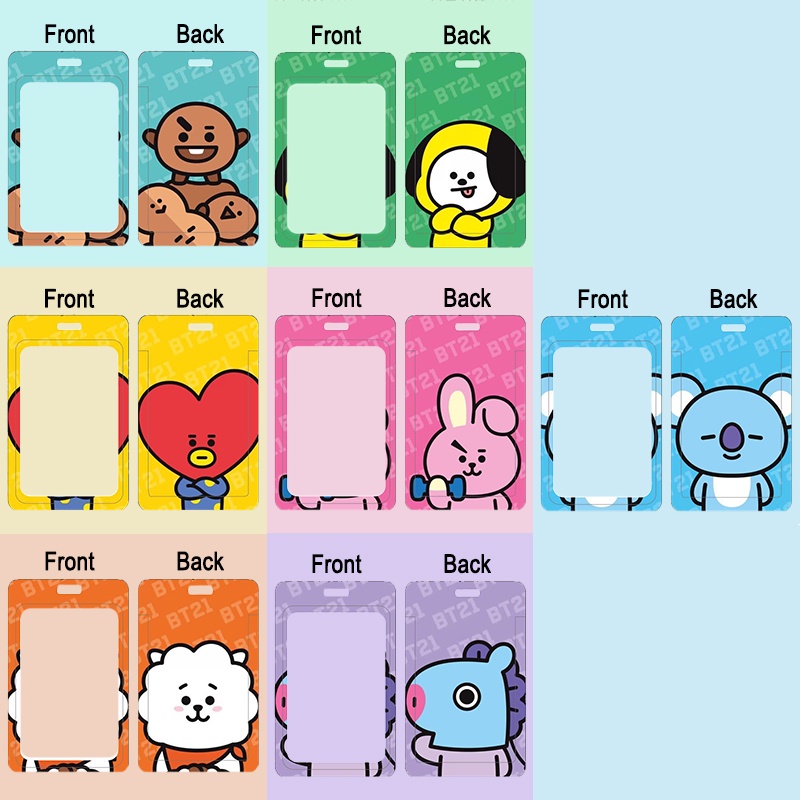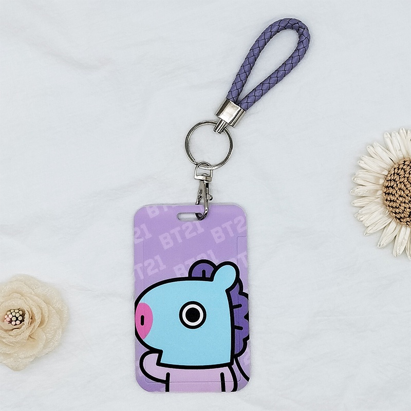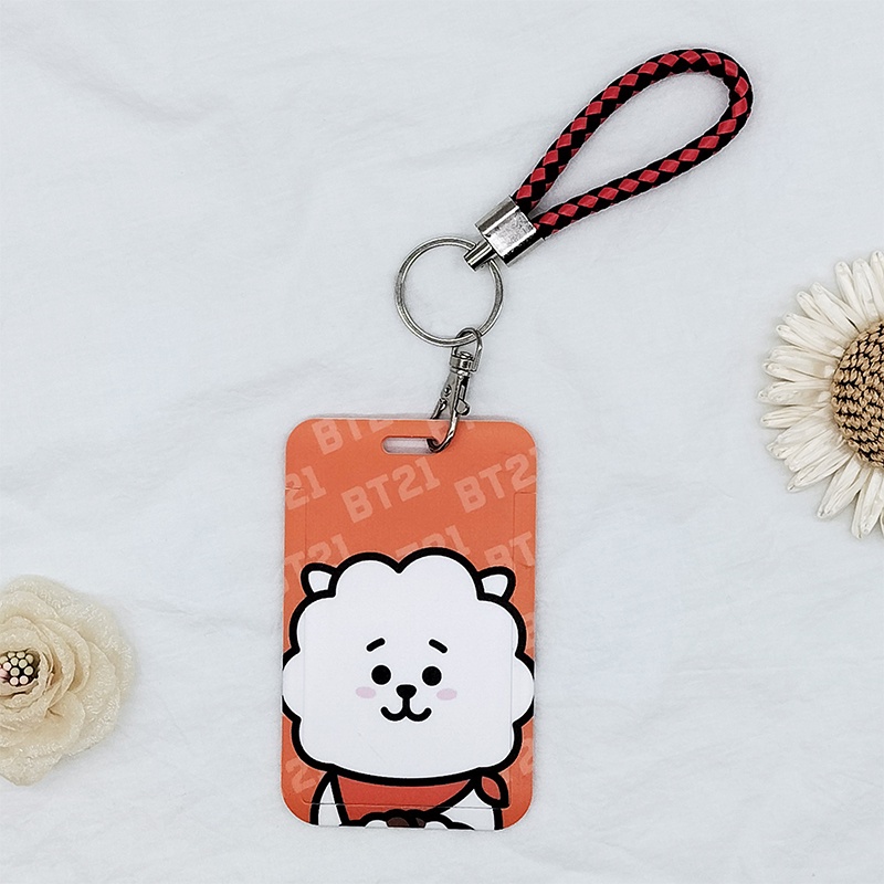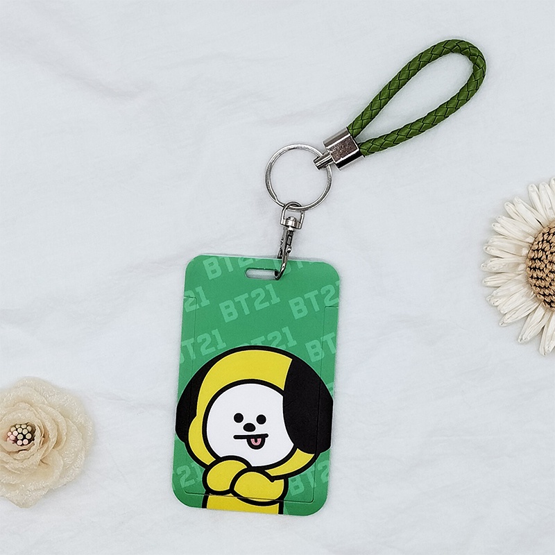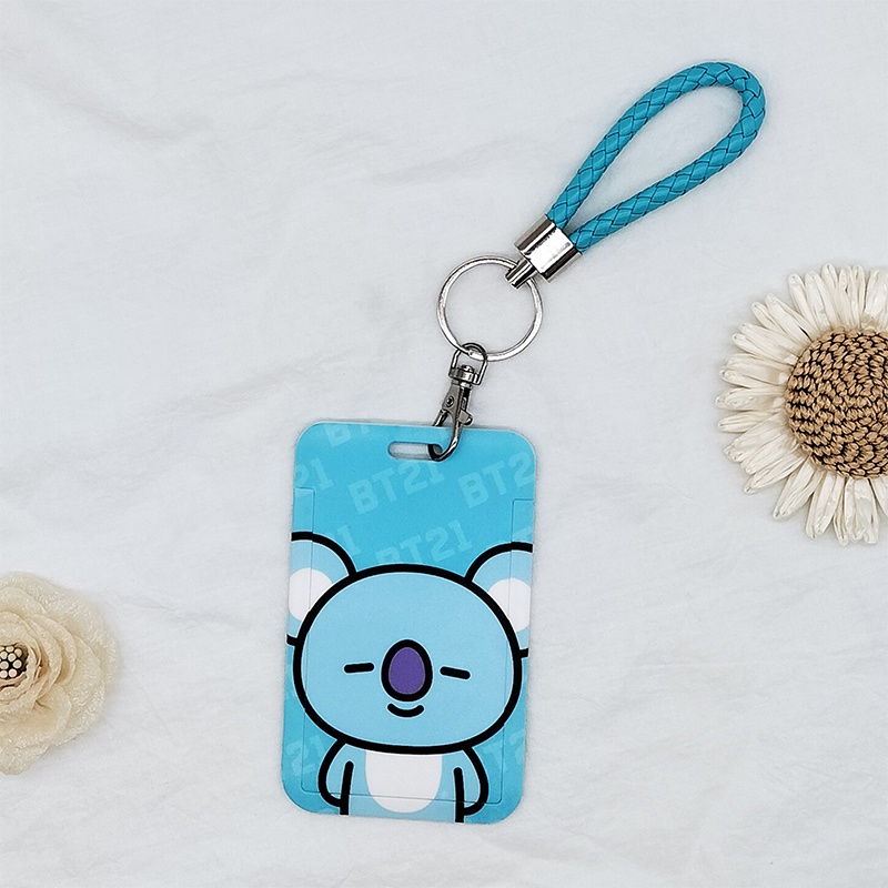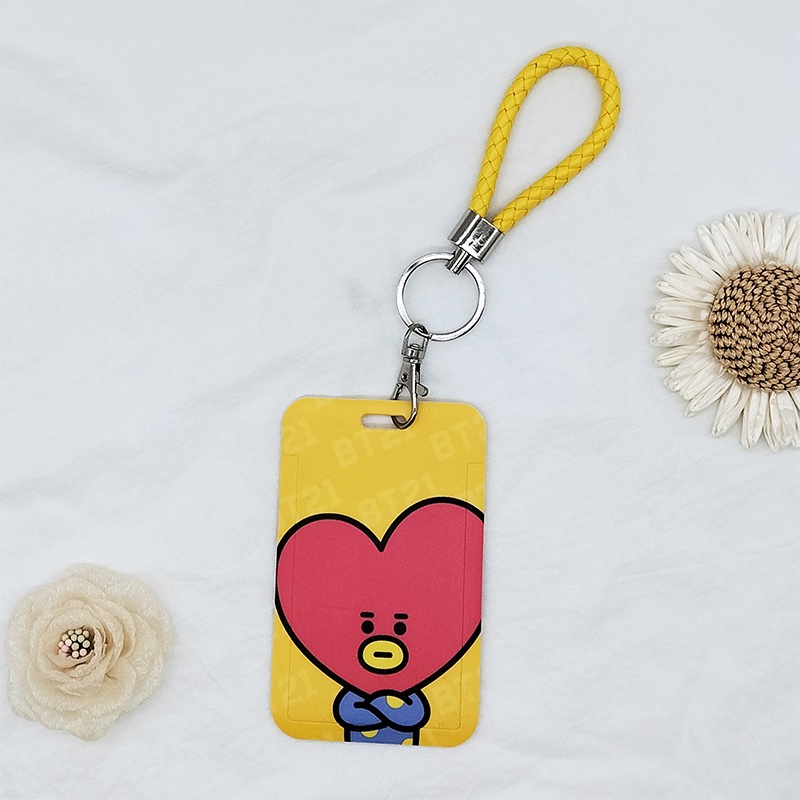 Porta-Cartões BTS BT21 + Chaveiro De Couro PU Para Protetor De Cartão De Identificação E Chaves Com Anel Anti-Perda