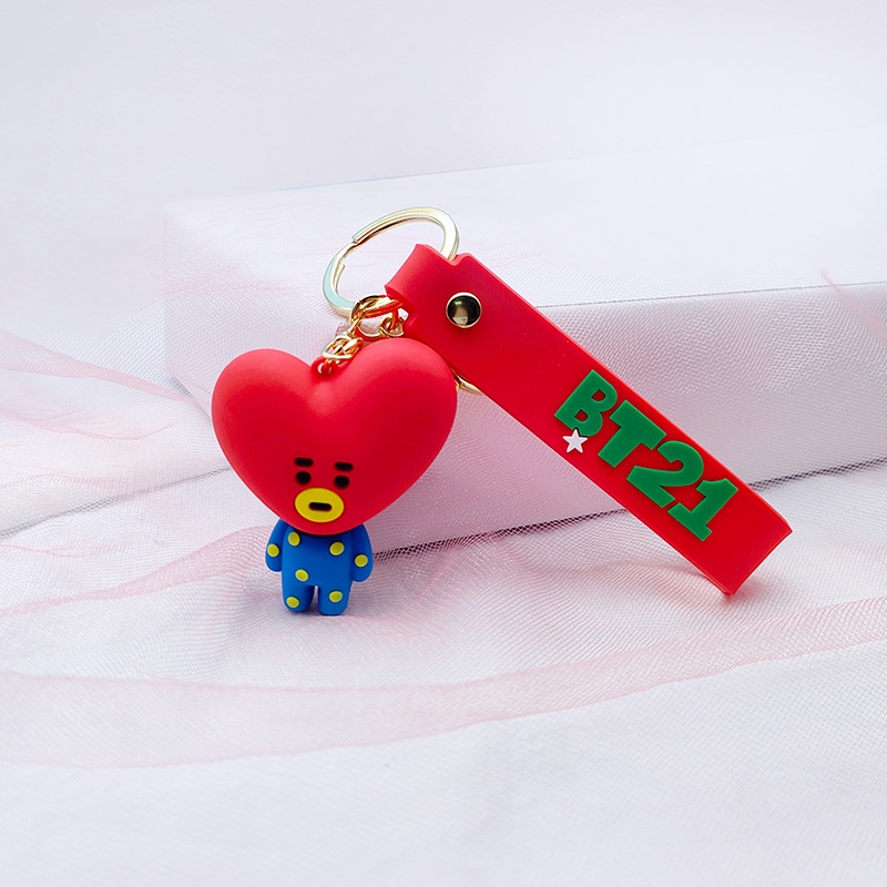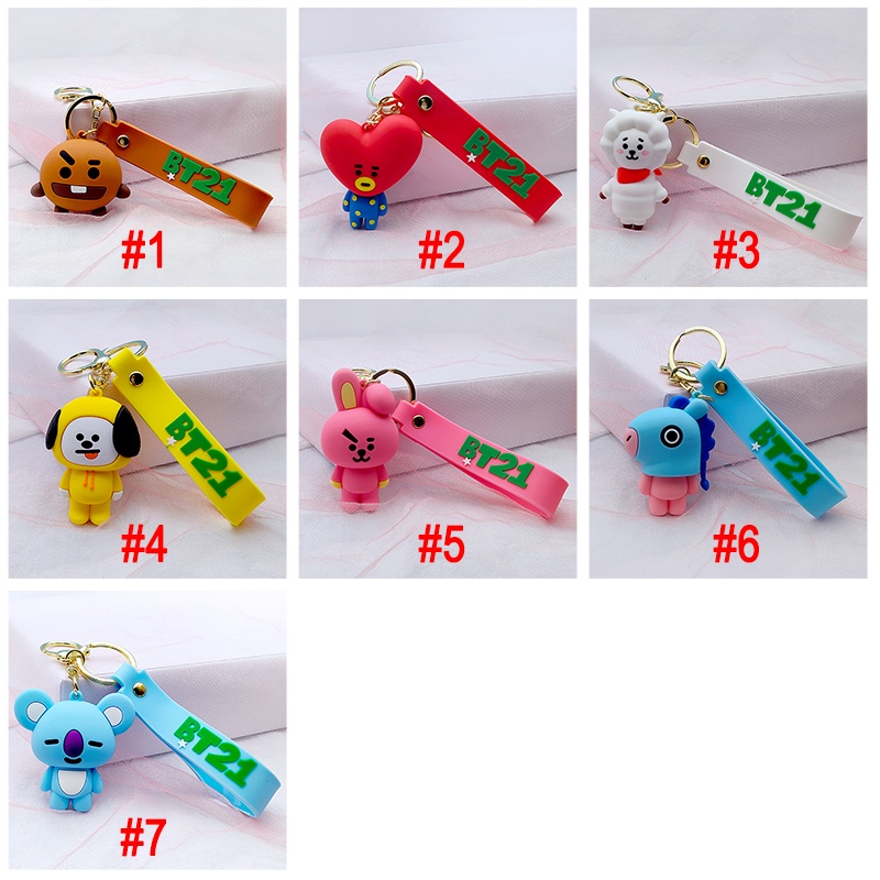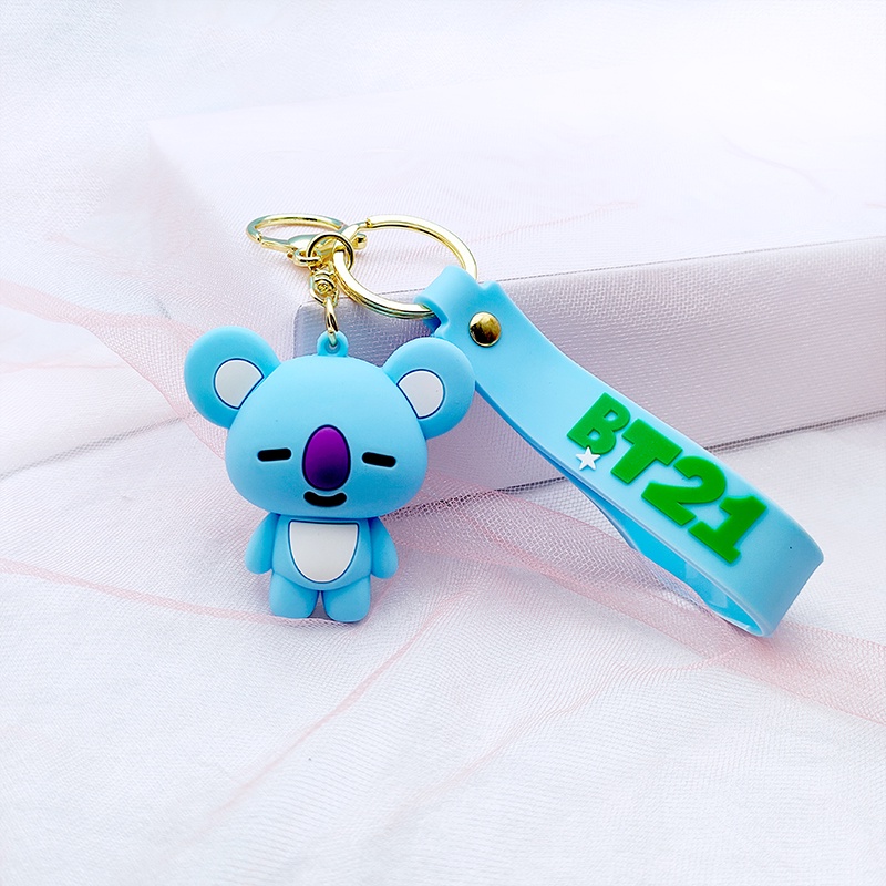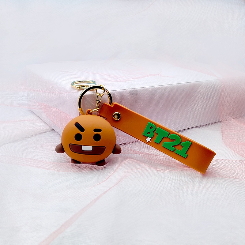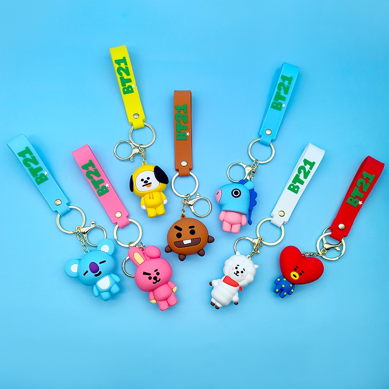Chaveiro 3D Keychain BTS Cute Cartoon Keyring Para Porta-Chaves De Identificação Decoração Sling Anti-Lost Accessories