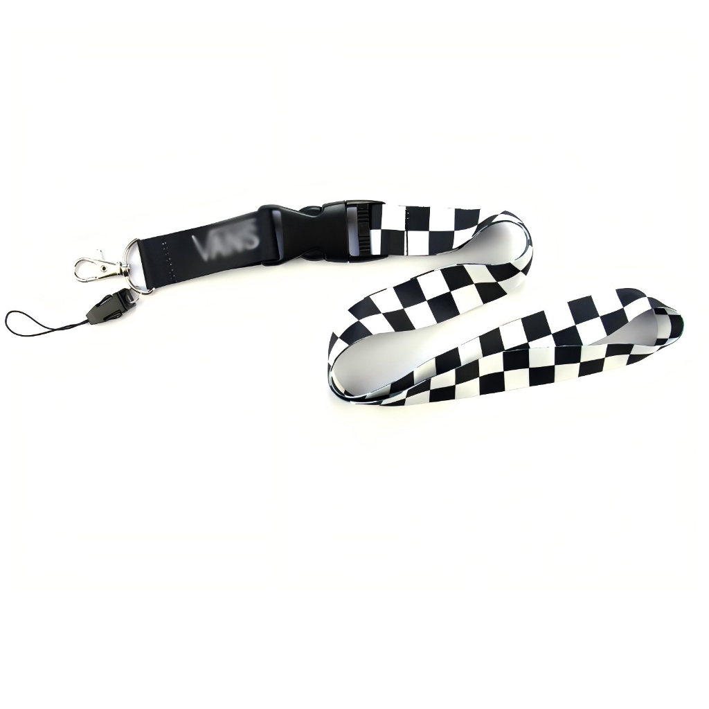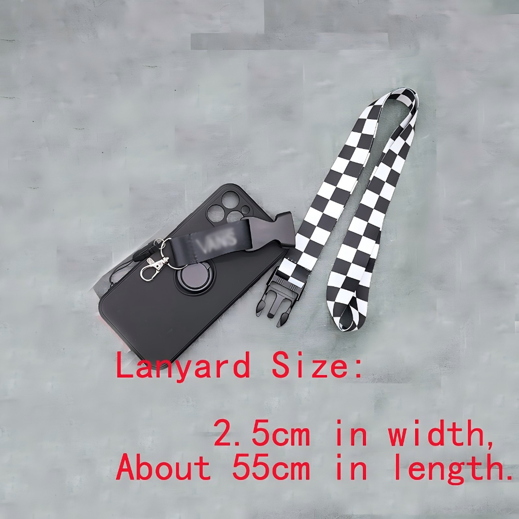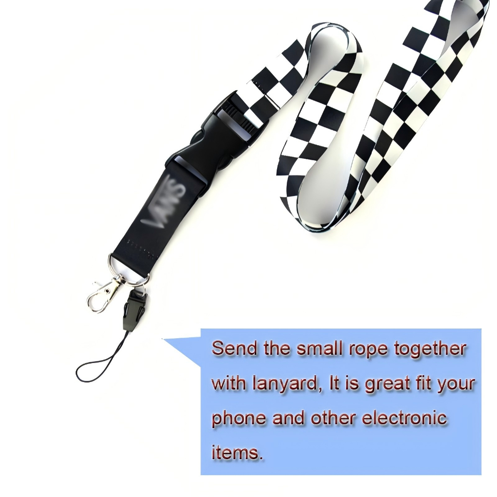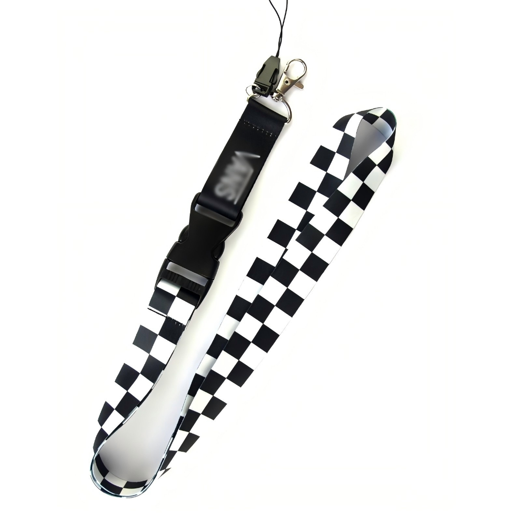 Cordão Xadrez Preto E Branco Com Botão De Liberação Rápida Para Suporte De Capa De Telefone Chaveiro Estilingue Anti-Per