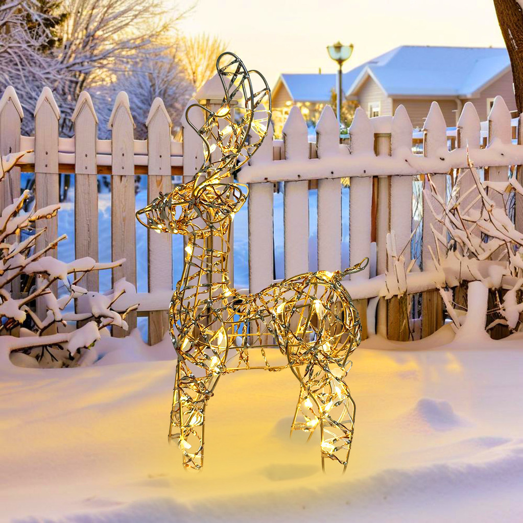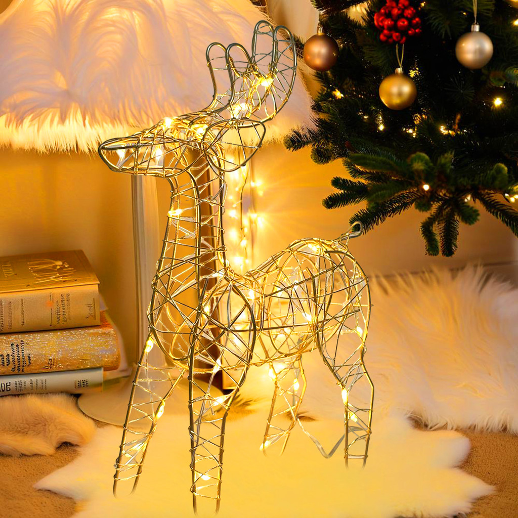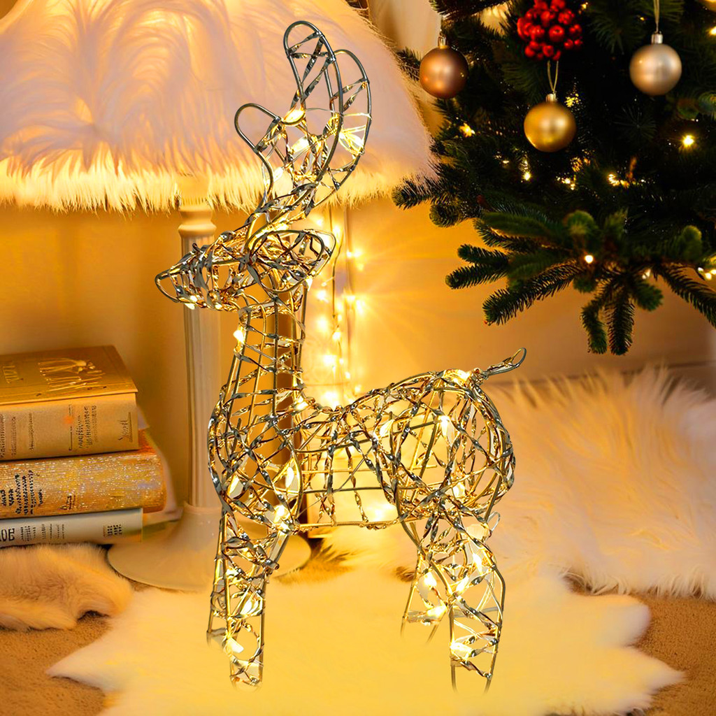 Shenhua Decoração De Rena De Natal 3D Operada Ferro Pré-Litada Com 30 Luzes LED Ao Ar Livre Interno Iluminado Cervo Em P