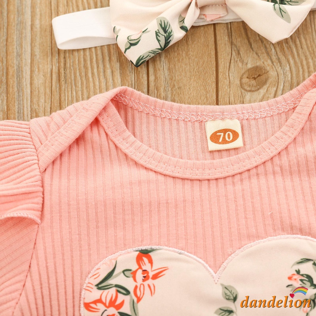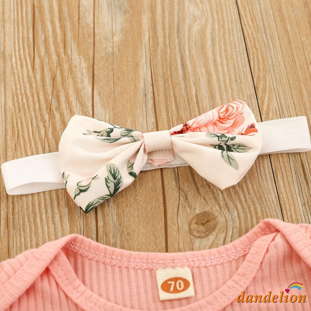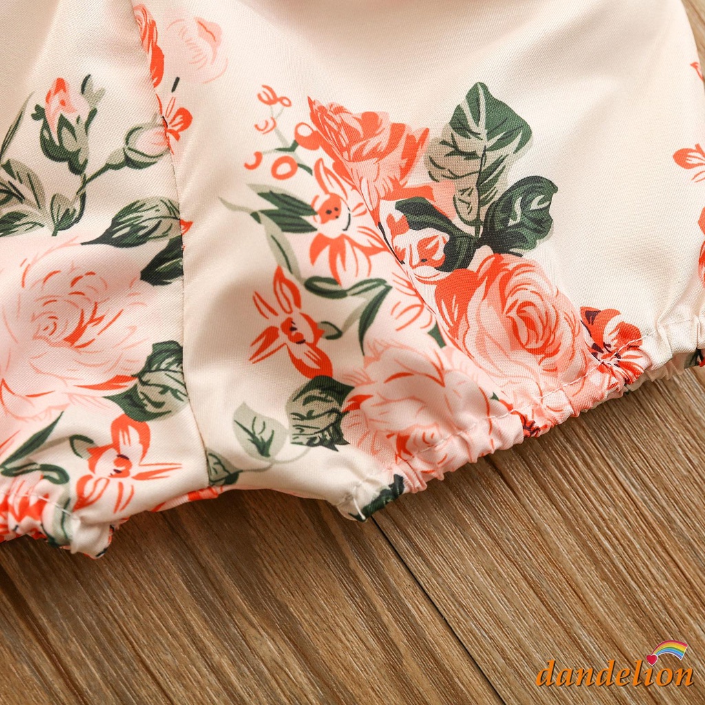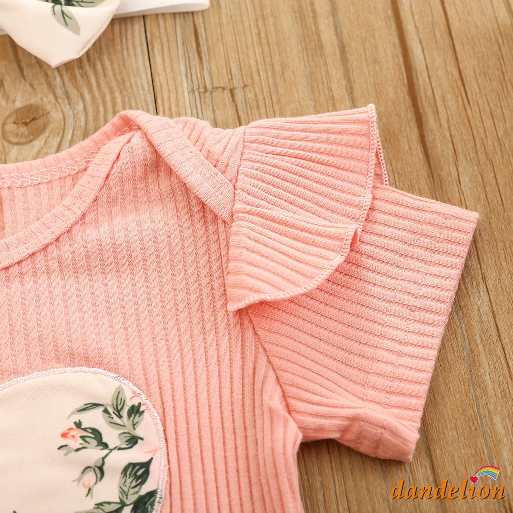DANDELION-Conjunto De Roupas De Verão Para Meninas/Macacão Plissado Com Manga Curta + Short Floral + Faixa De Cabeça