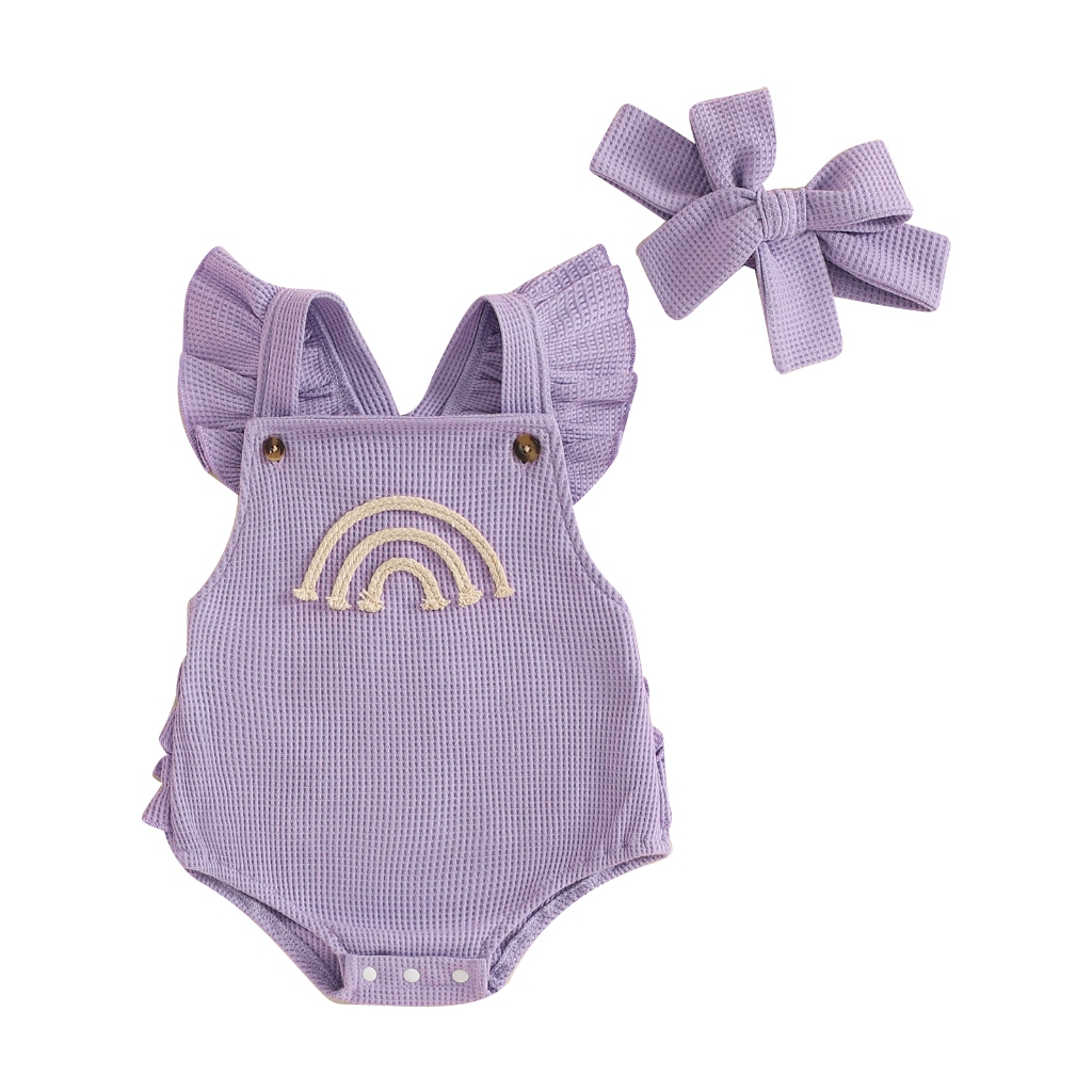 Dandelion-0-18 Meses Macacão Casual Para Bebês Meninas , Estampa Arco-Íris Com Babados Triângulo Sem Mangas Faixa De Cabeça