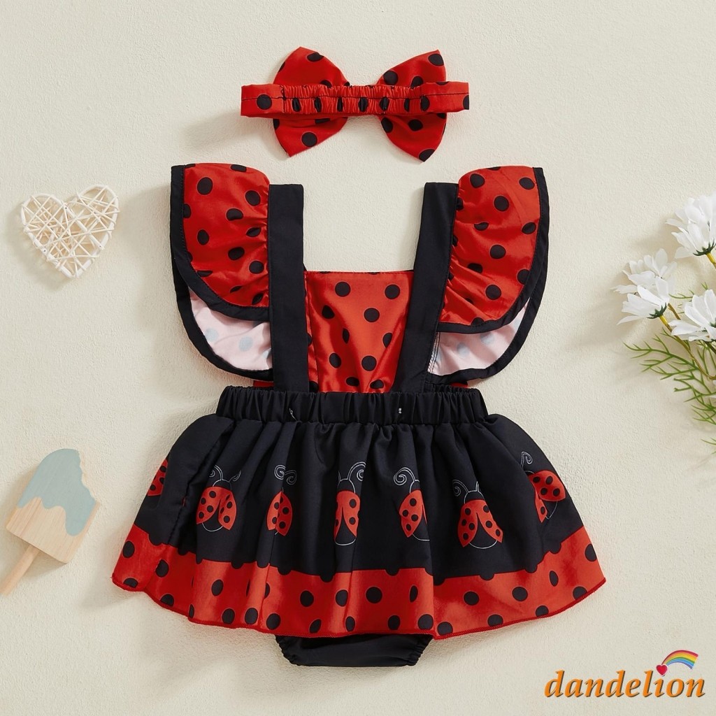 Macacão Para Bebês Meninas Com Faixa De Cabeça Abelha/Joaninha/Vaca/Elefante Estampa Manga Voadora Roupas De Verão