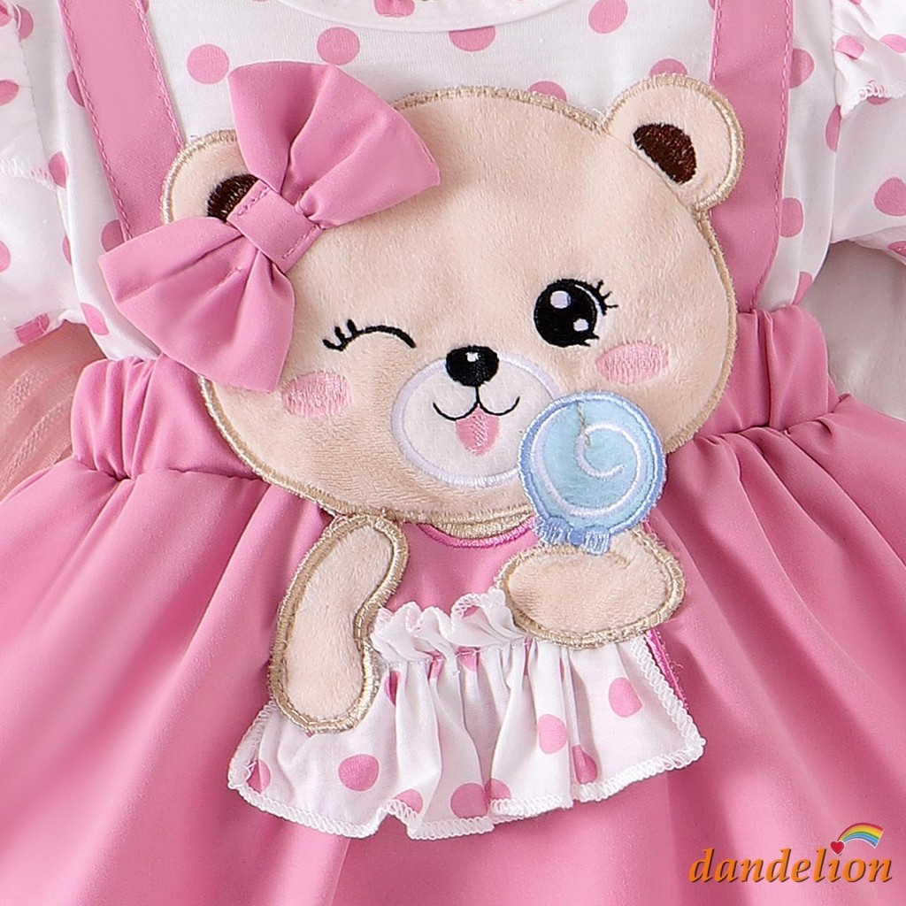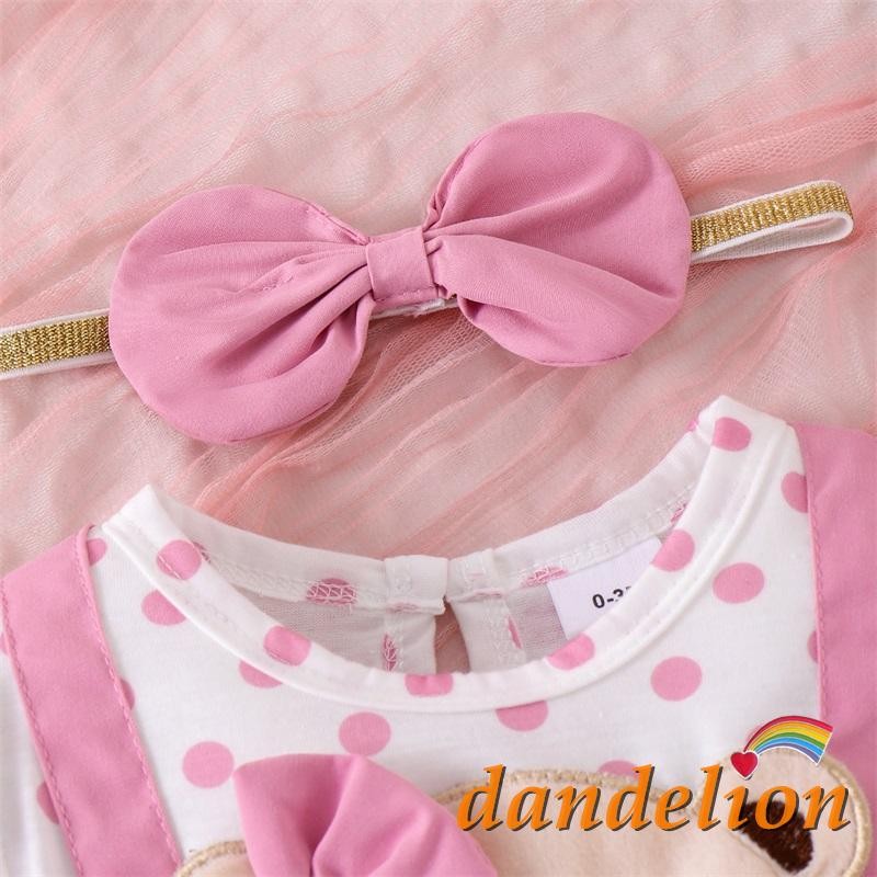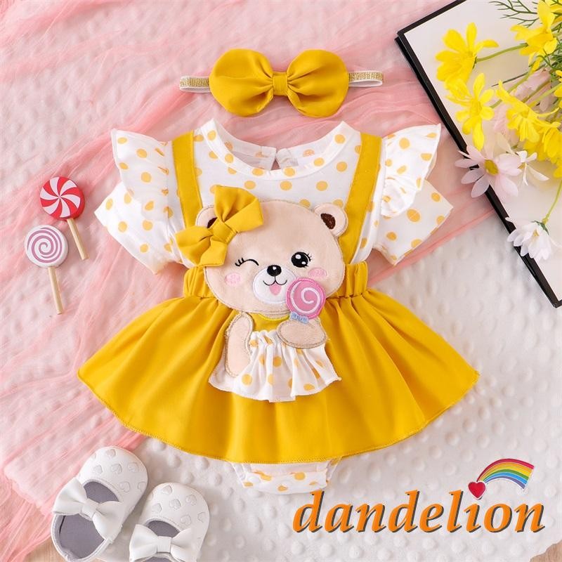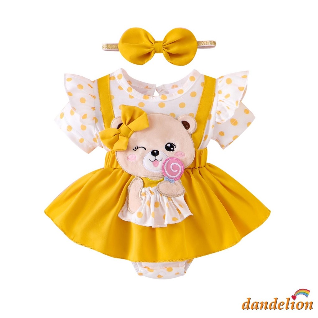 Bebê Meninas Verão Manga Curta Urso Bordado Macacão Com Bandana Roupas Recém-Nascidas