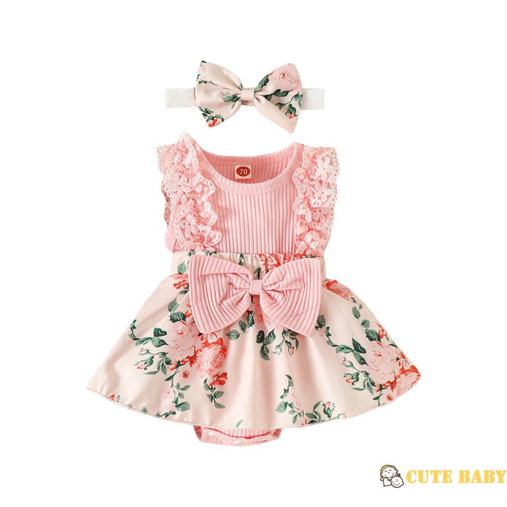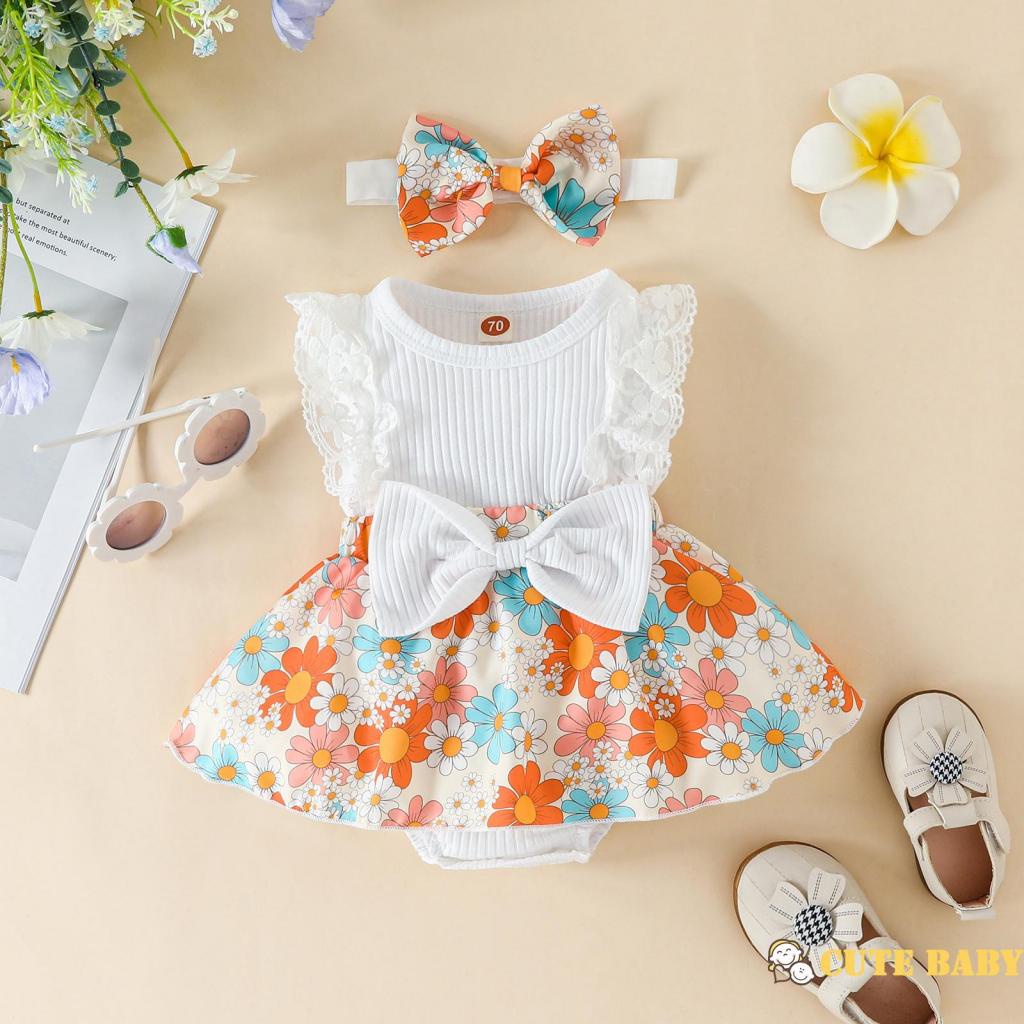 Eph-Macacão Infantil De Retalhos Para Bebês Meninas Com Estampa De Flores E Faixa De Cabeça,0-18 Meses
