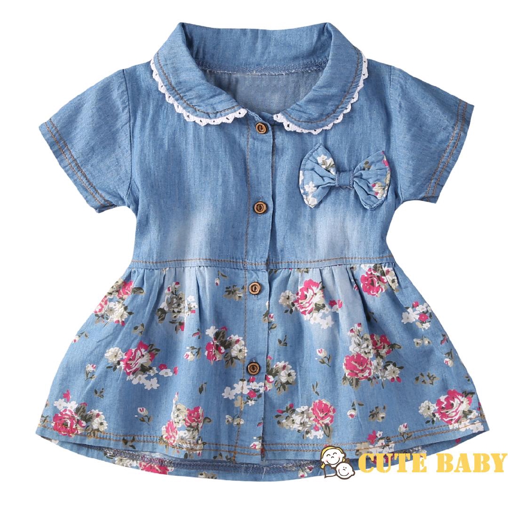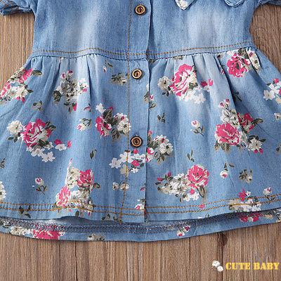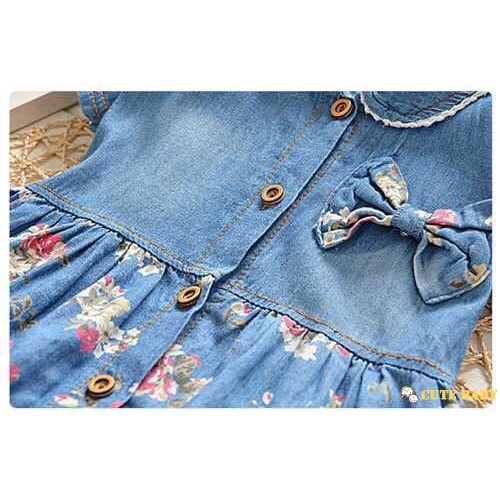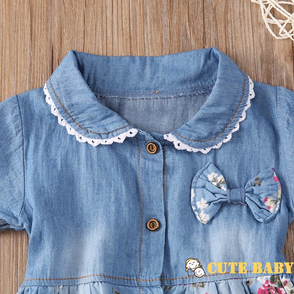 Eph-Vestido Jeans Com Botões Estampados De Flores E Manga Curta Para Infantil Bebês Meninas, 0-4 Anos