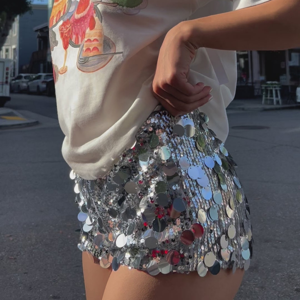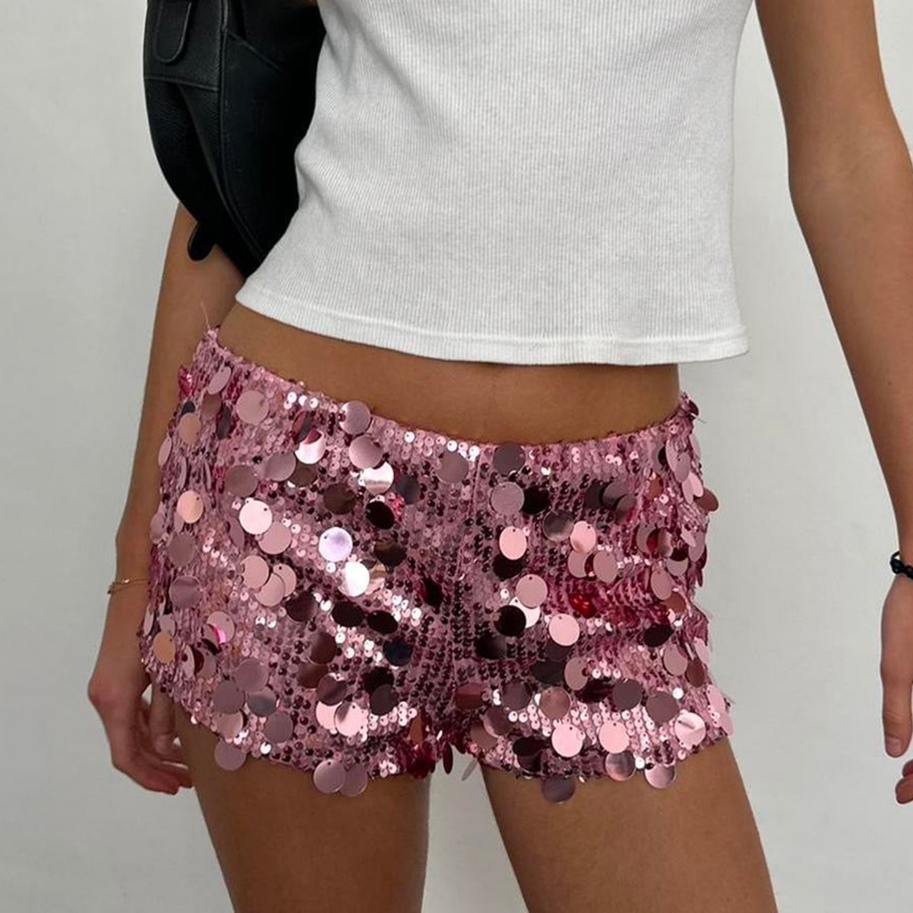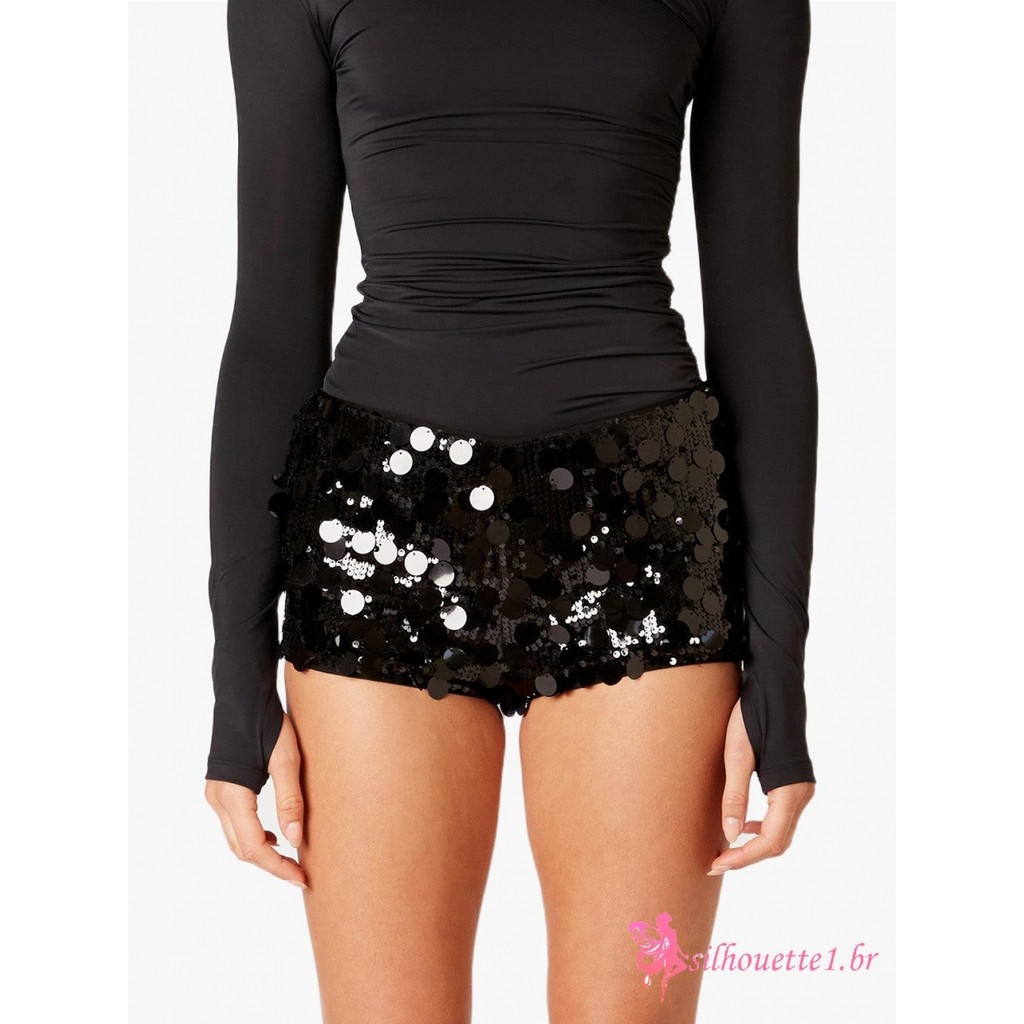 Silhouette1-Shorts Femininos De Verão Com Lantejoulas Brilhantes E Cintura Elástica Para Festa De Carnaval