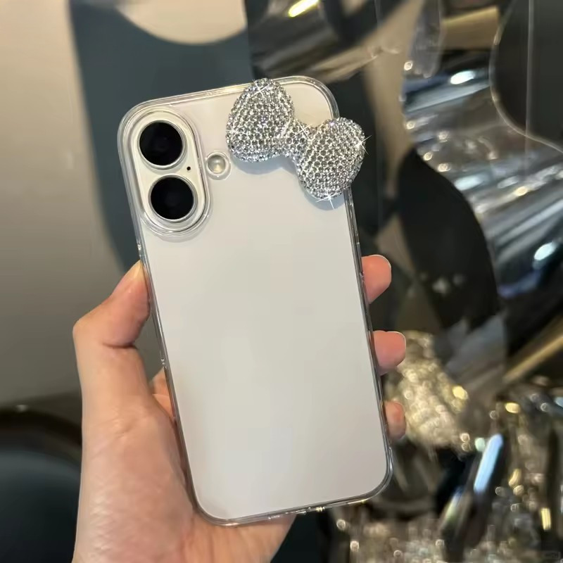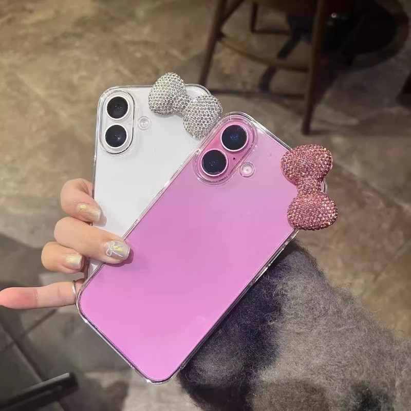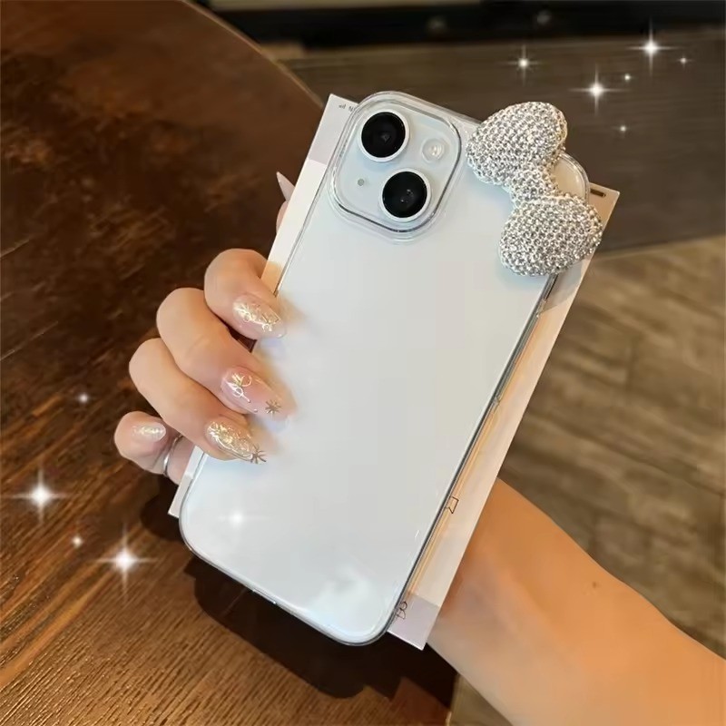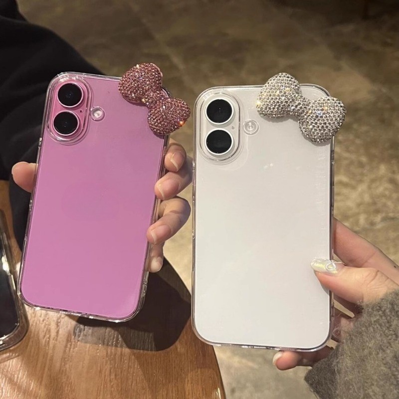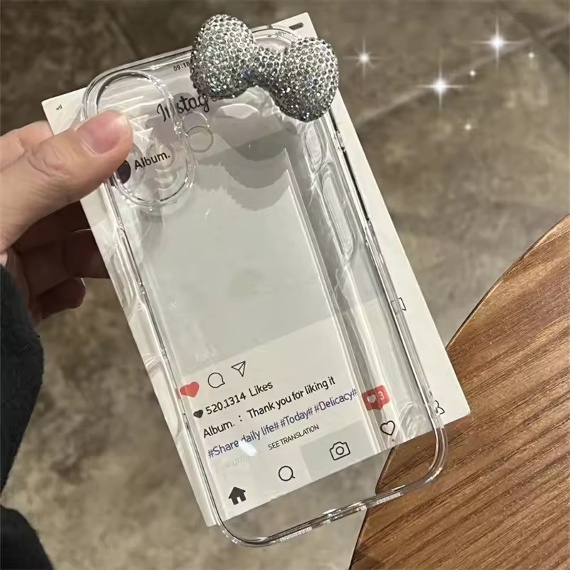Luxo 3D Bowknot Diamand Caso Claro Para iPhone 16 15 13 12 14 11 Pro Max Plus Mini X XR Bonito Capa Macia Presente Da Me