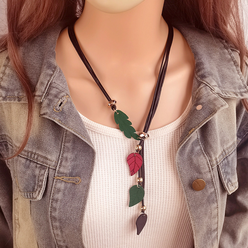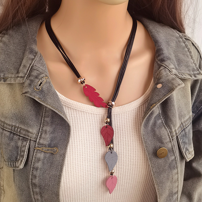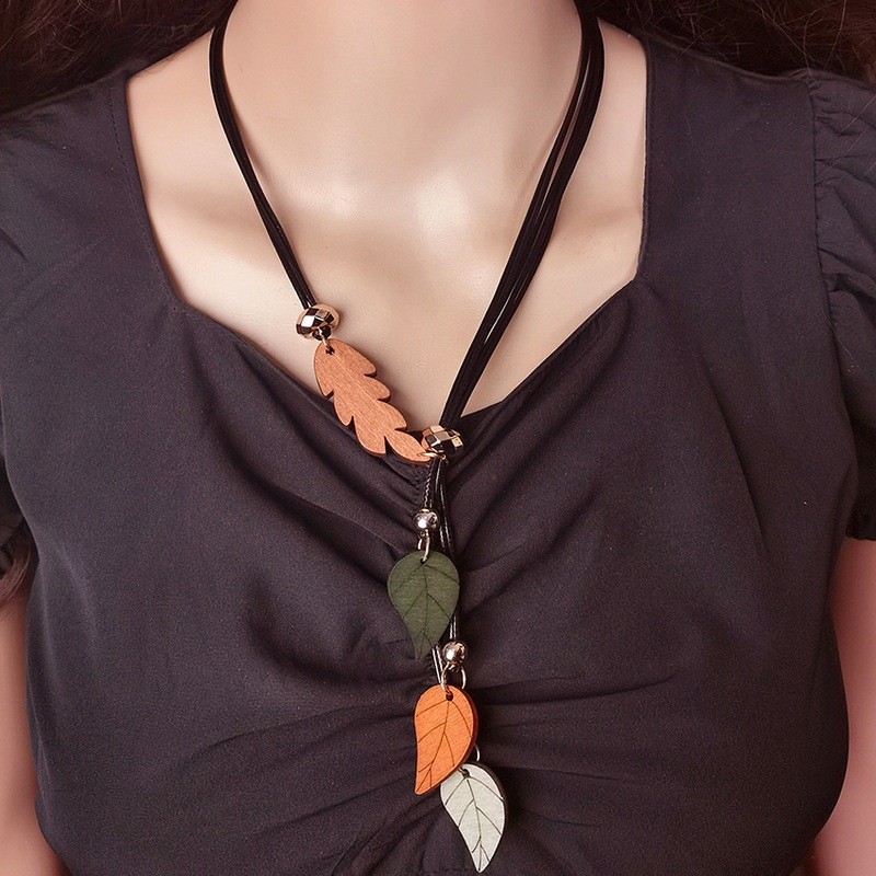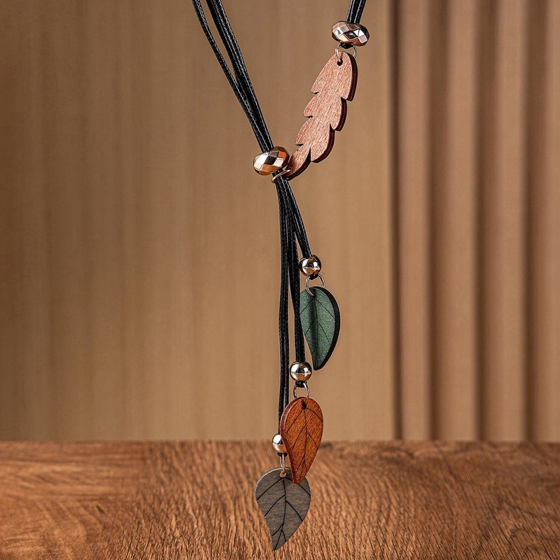 Deixa Colar De Folhas De Madeira De Folha Colorida Contas De Boho De Múltiplas Camadas Geométrico Boêmia