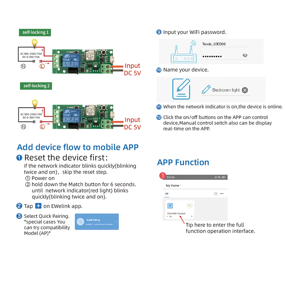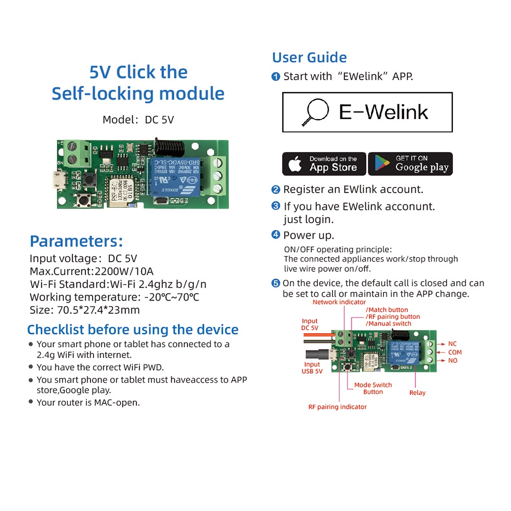 DIYMORE eWeLink Controle Sonoff 5V Auto-Trava Inteligente WiFi Sem Fio Módulo De Relé DC5V Por APP Control