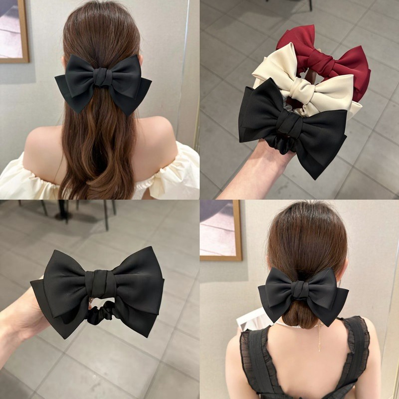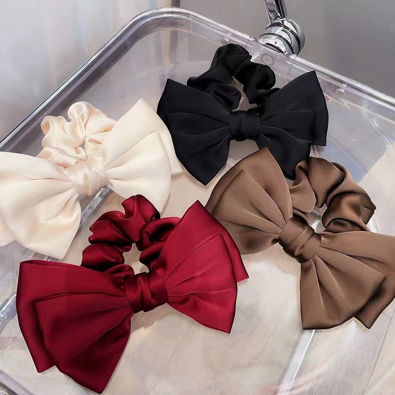 1Pcs Clássico Laço De Grande Satin Hair Ties High Ponytail Rope Scrunchies Para Meninas Doces