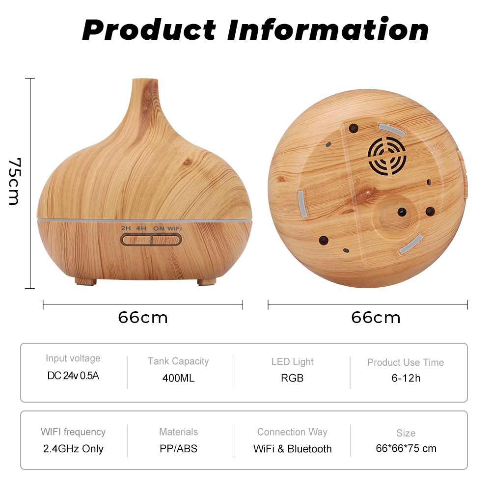 SMATRUL Tuya WiFi Umidificador De Ar Difusor Do Óleo Essencial Aroma Ultra-Sônica 400 Ml De Grão De Madeira Fabricante De Névoa Diodo Emissor De Luz