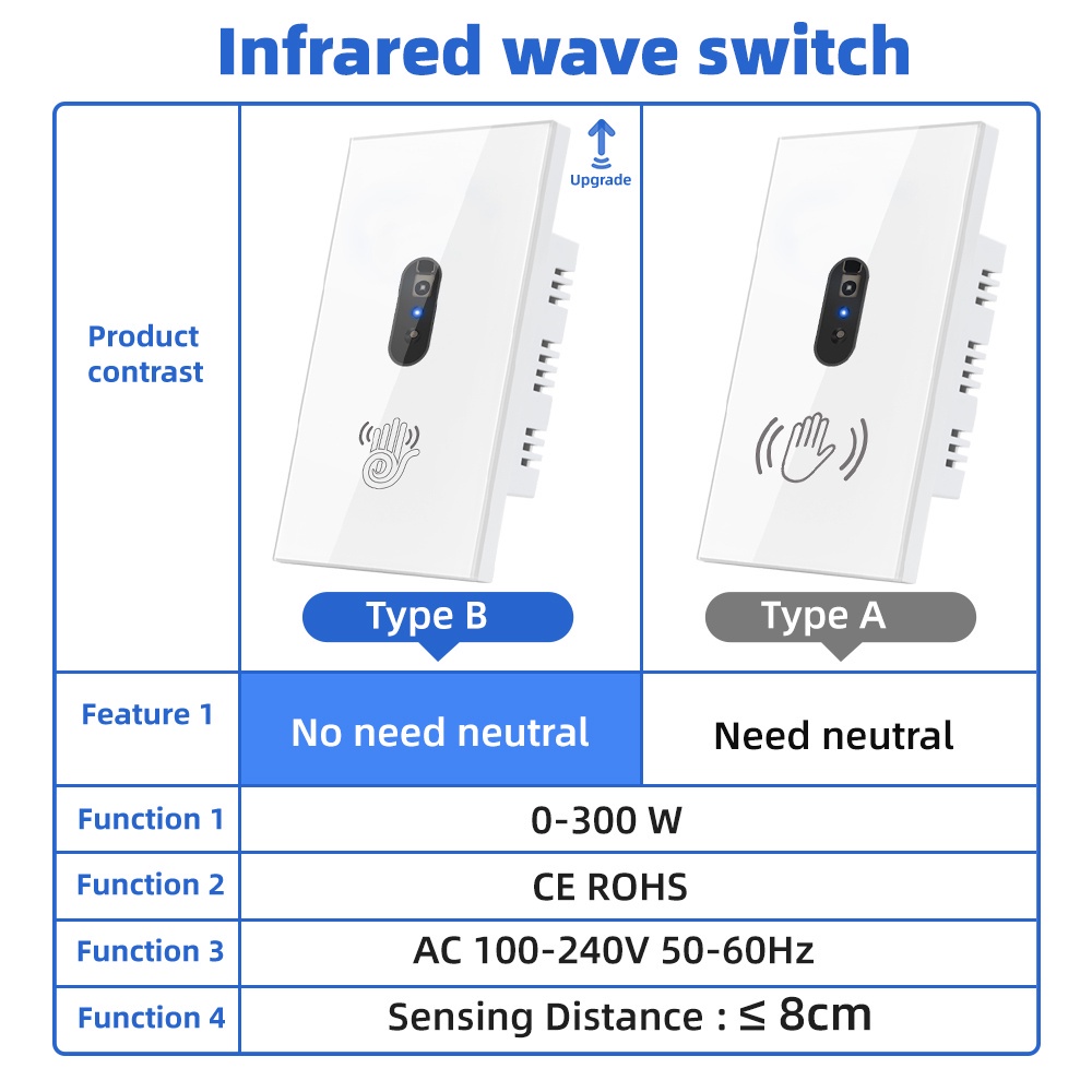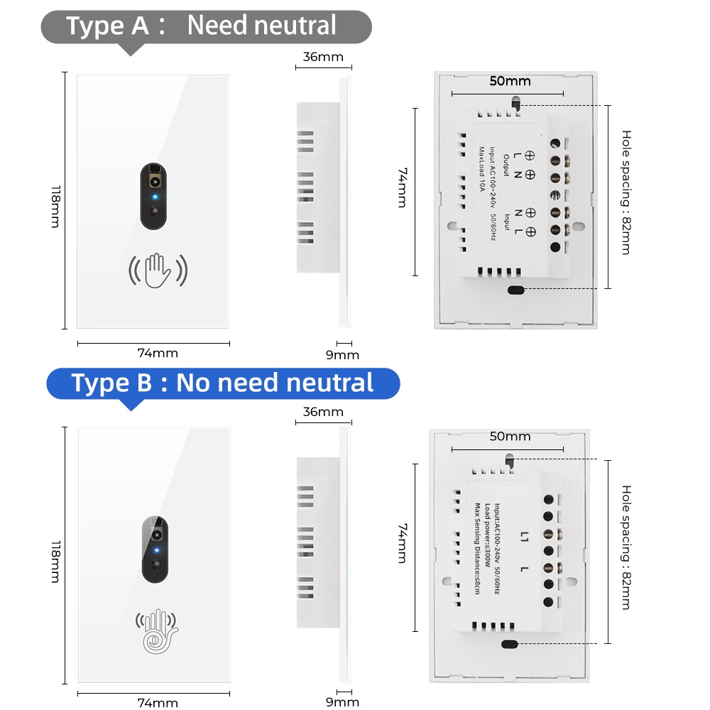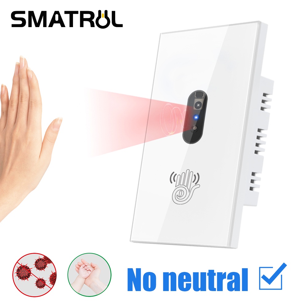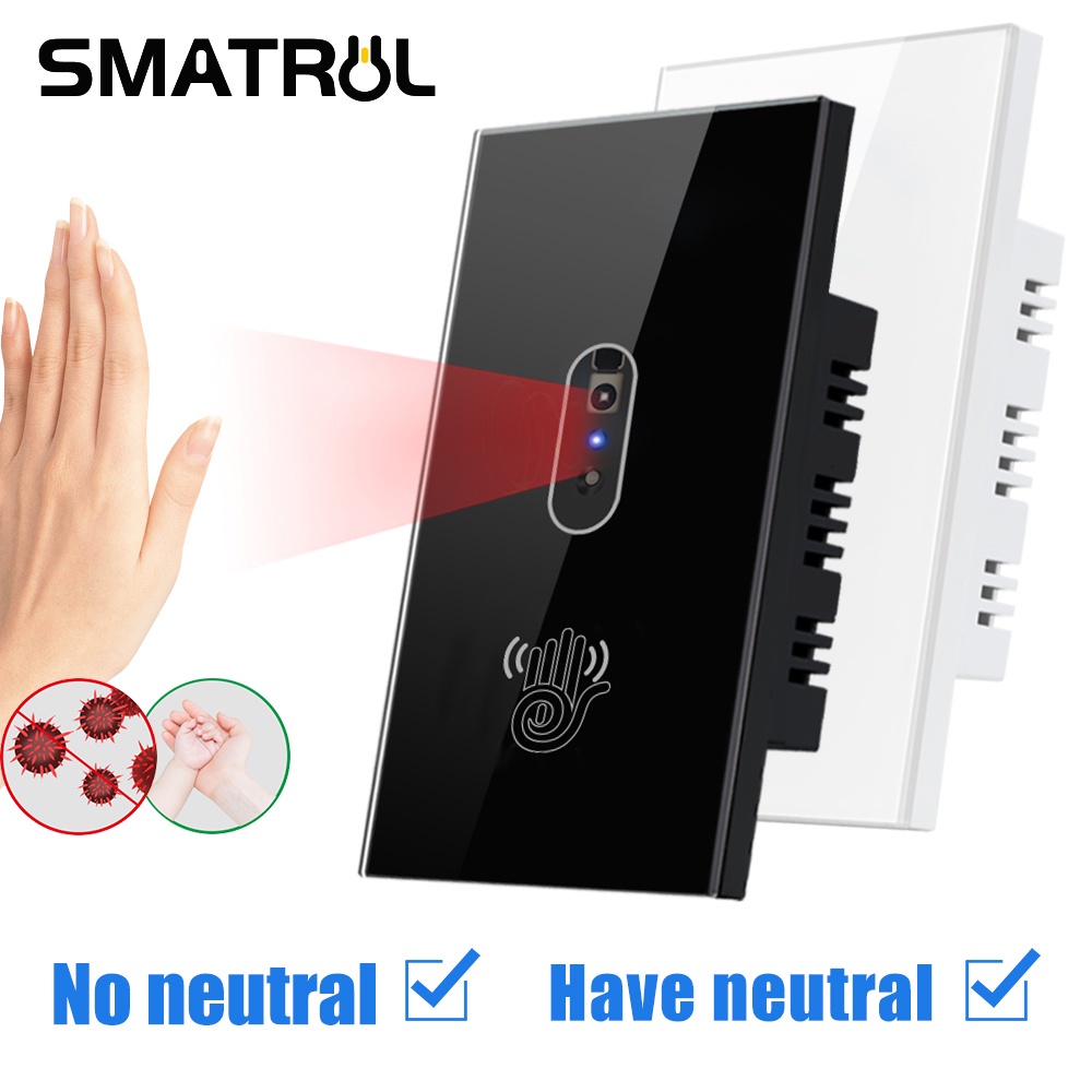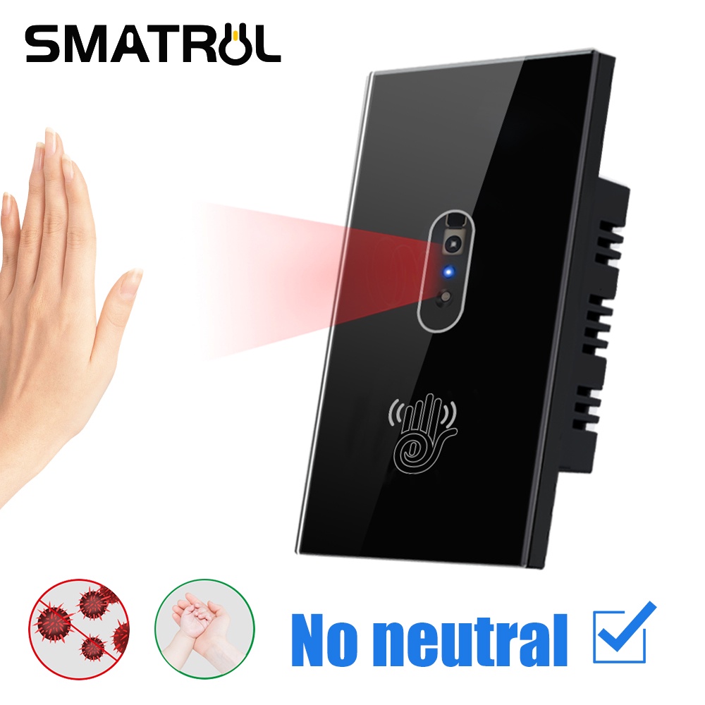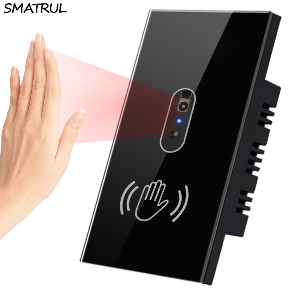 SMATRUL No Fio Neutro IR Interruptor De Luz De Parede Onda Sensor Infravermelho Sem Necessidade Toque Eua 110 V 220 Tela De Vidro Do Painel De Energia Elétrica On Off Lâmpada