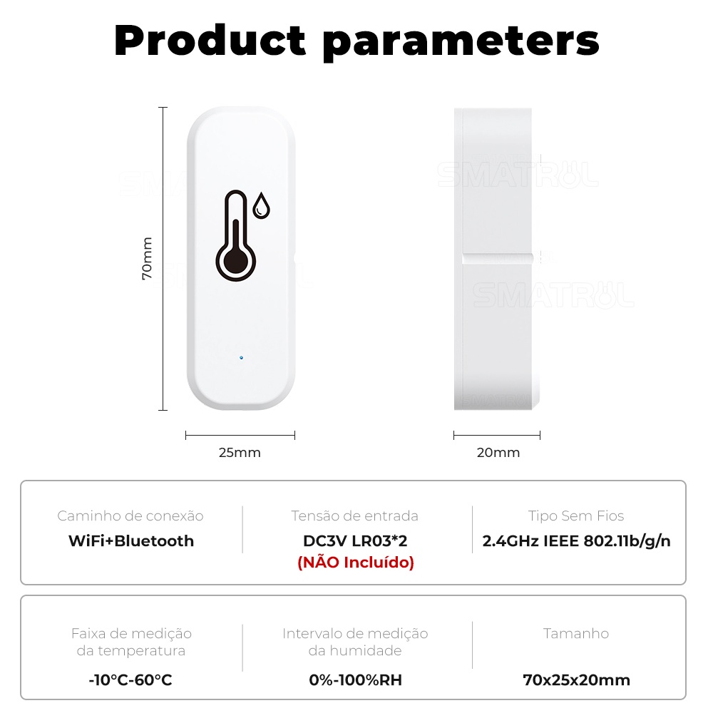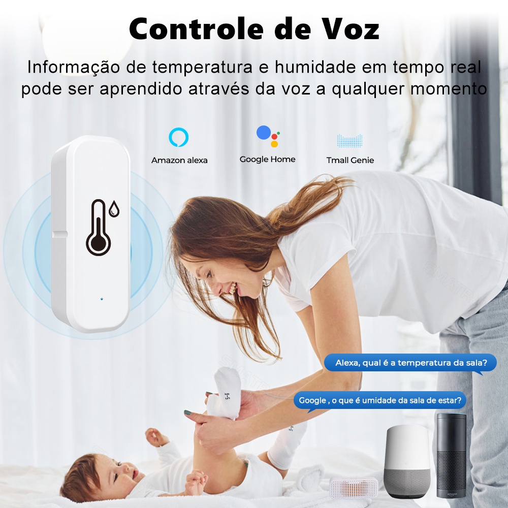 SMARTRUL TUYA | Sensor de Umidade e Temperatura Interior com Alarme de Voz
