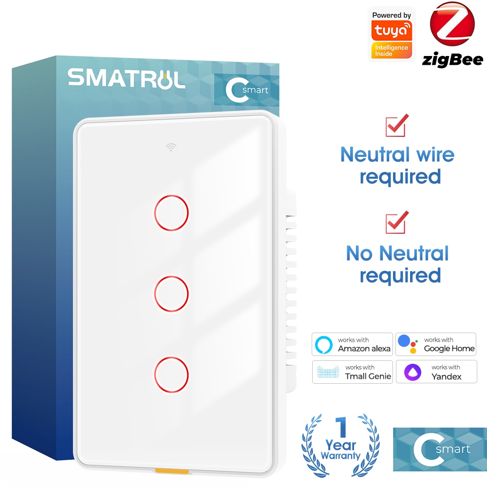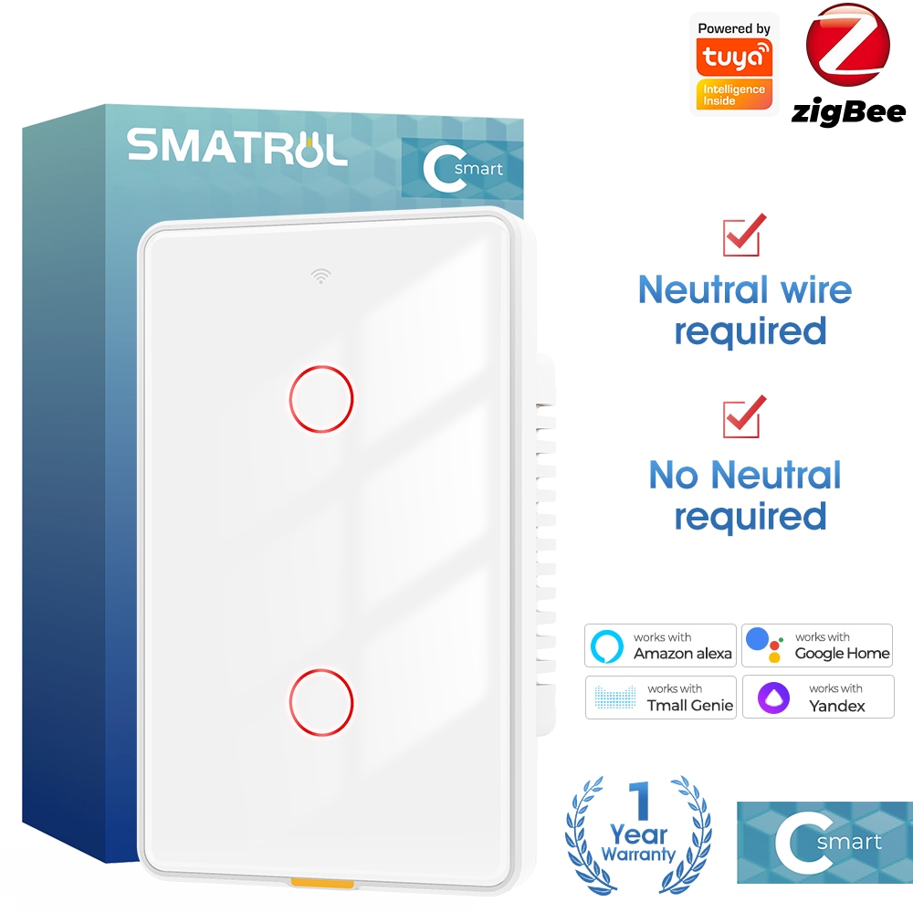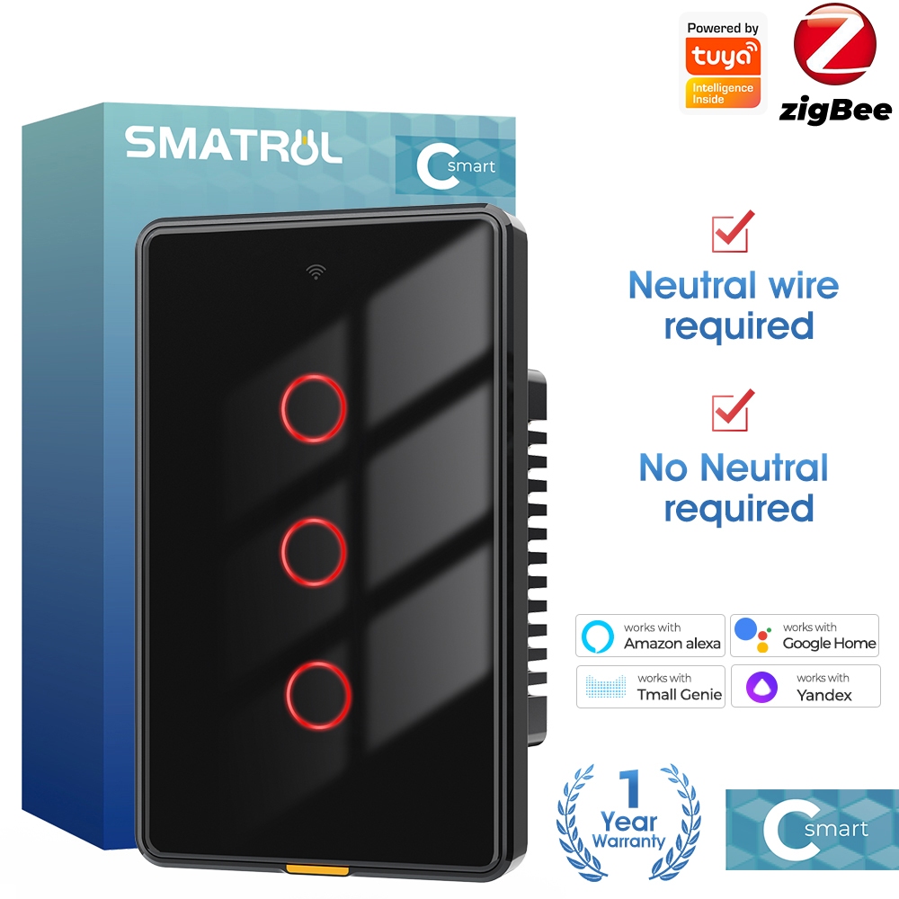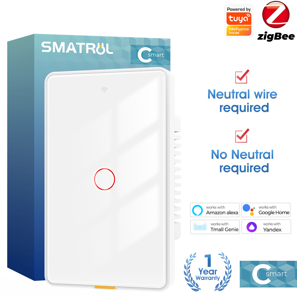 SMATRUL Tuya Zigbee Interruptor Inteligente De Toque De Luz Sem Neutro Relé Magnético De Parede De Fio US 100-250v Aplicativo De Voz Tmall Genie , Alexa , Google Home Necessidade De Capacitor