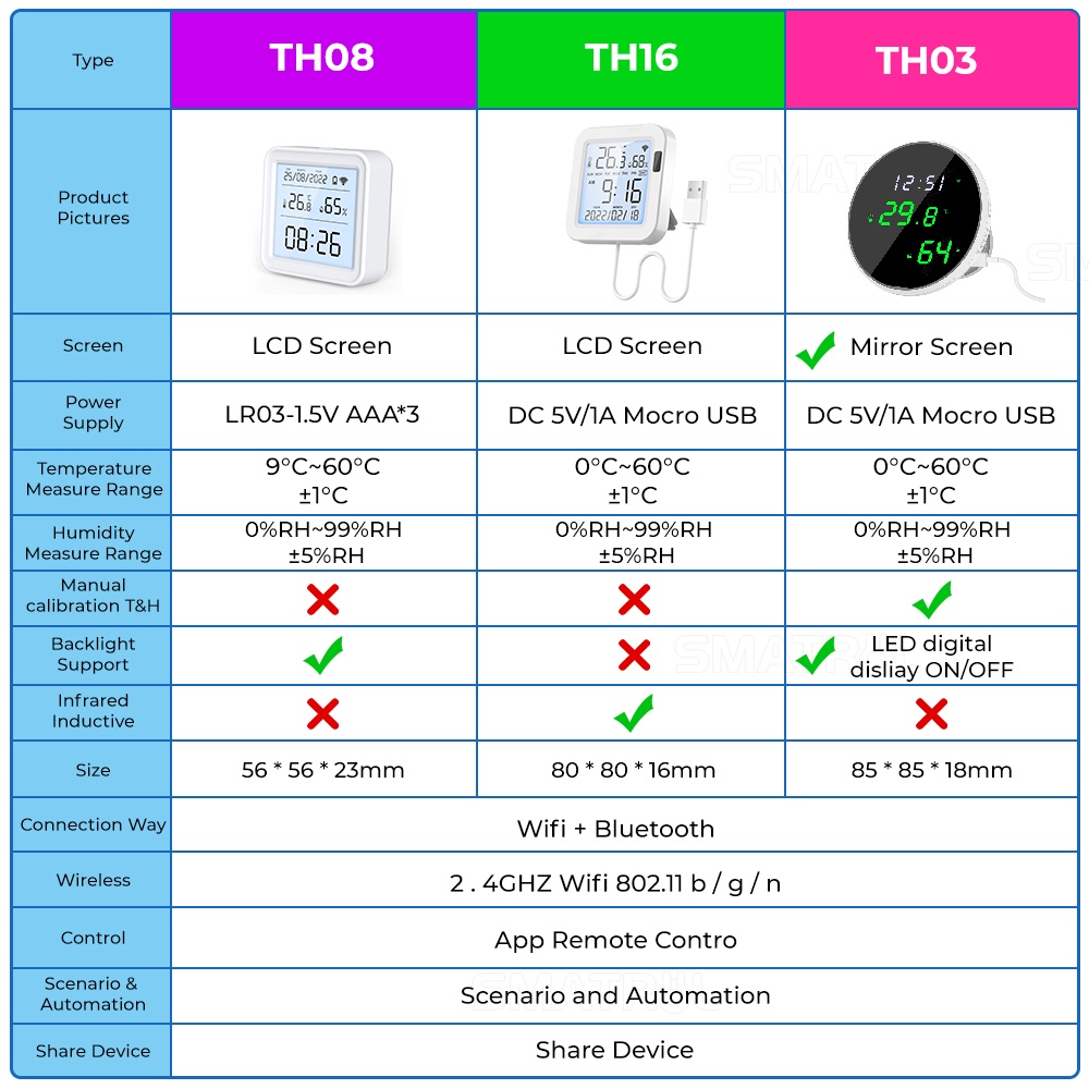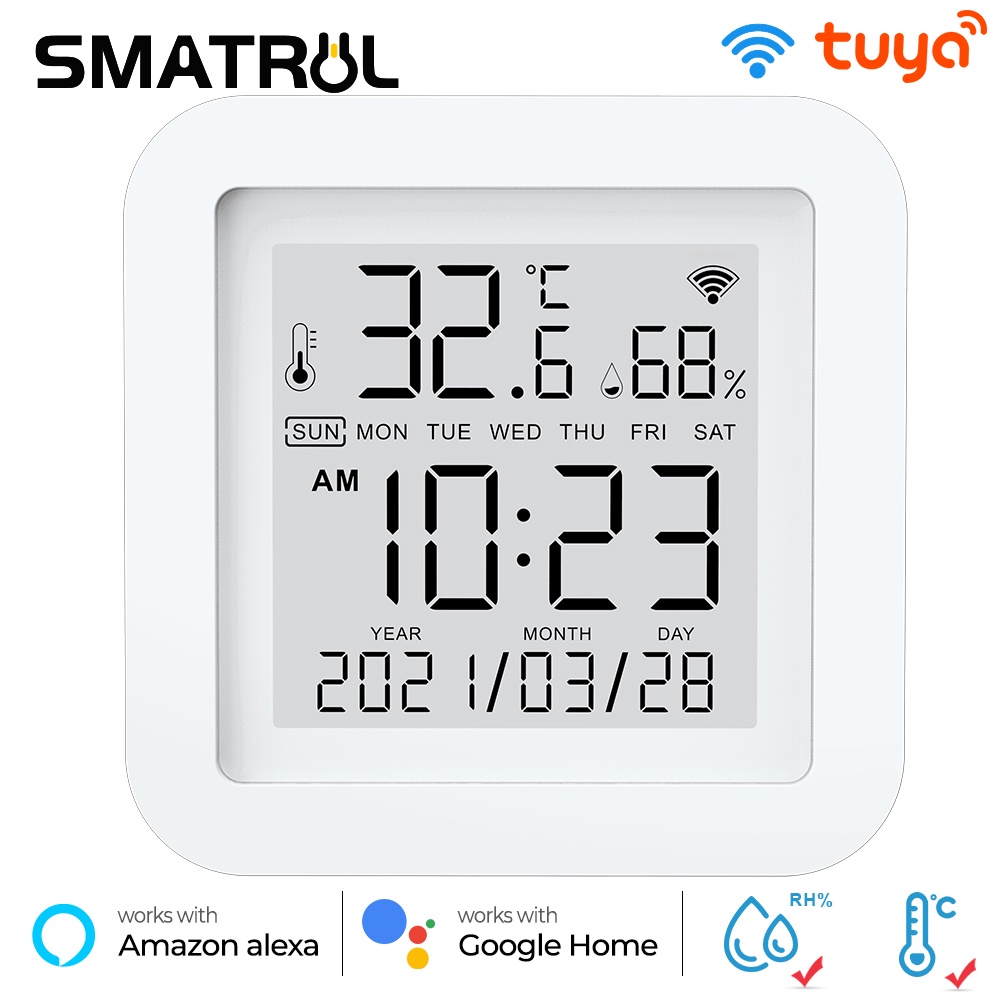 SMATRUL Tuya WIFI Sensor de temperatura e umidade Detector Smart Life Controle Remoto Suporte Alexa Google Home