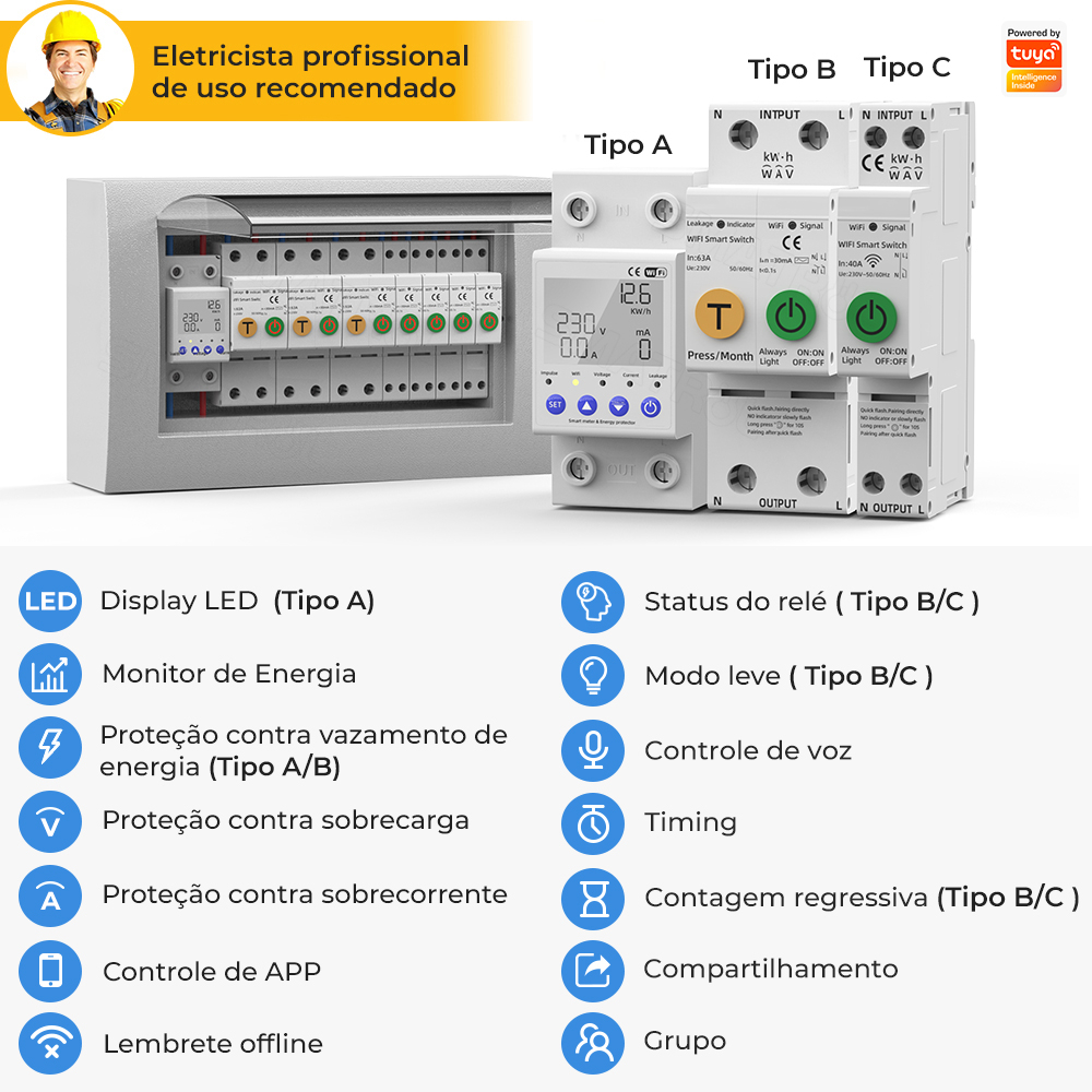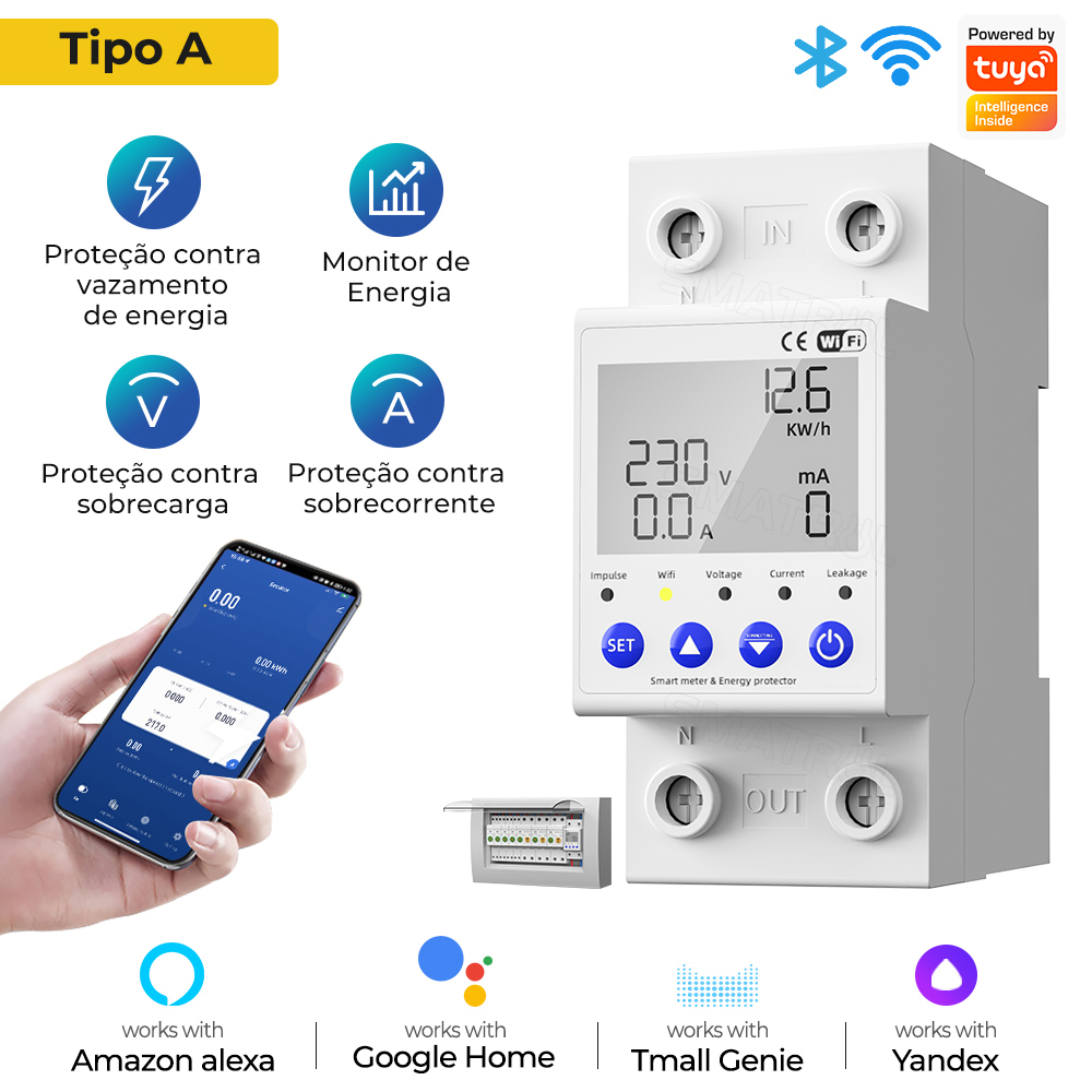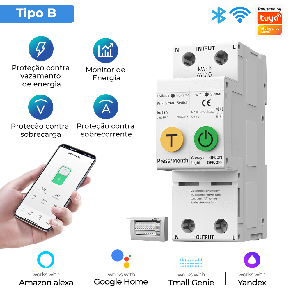 SMATRUL 40/63A WIFI Smart Switch TUYA Medidor De Energia Kwh Disjuntor De Medição Timer Com Corrente De Tensão E Proteção Contra Vazamentos
