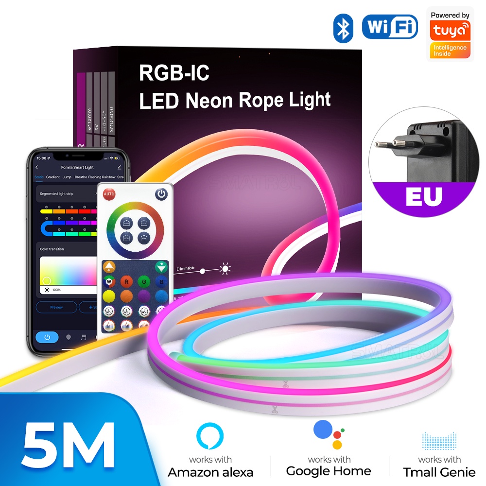 SMATRUL Tuya Smart Wifi Faixa De Luz Led Colorida RGB 5050 Fita Ip67 5m À Prova D'água + 24 Teclas + Cabo USB Controle Remoto De Energia Alexa Google Home Voice APP